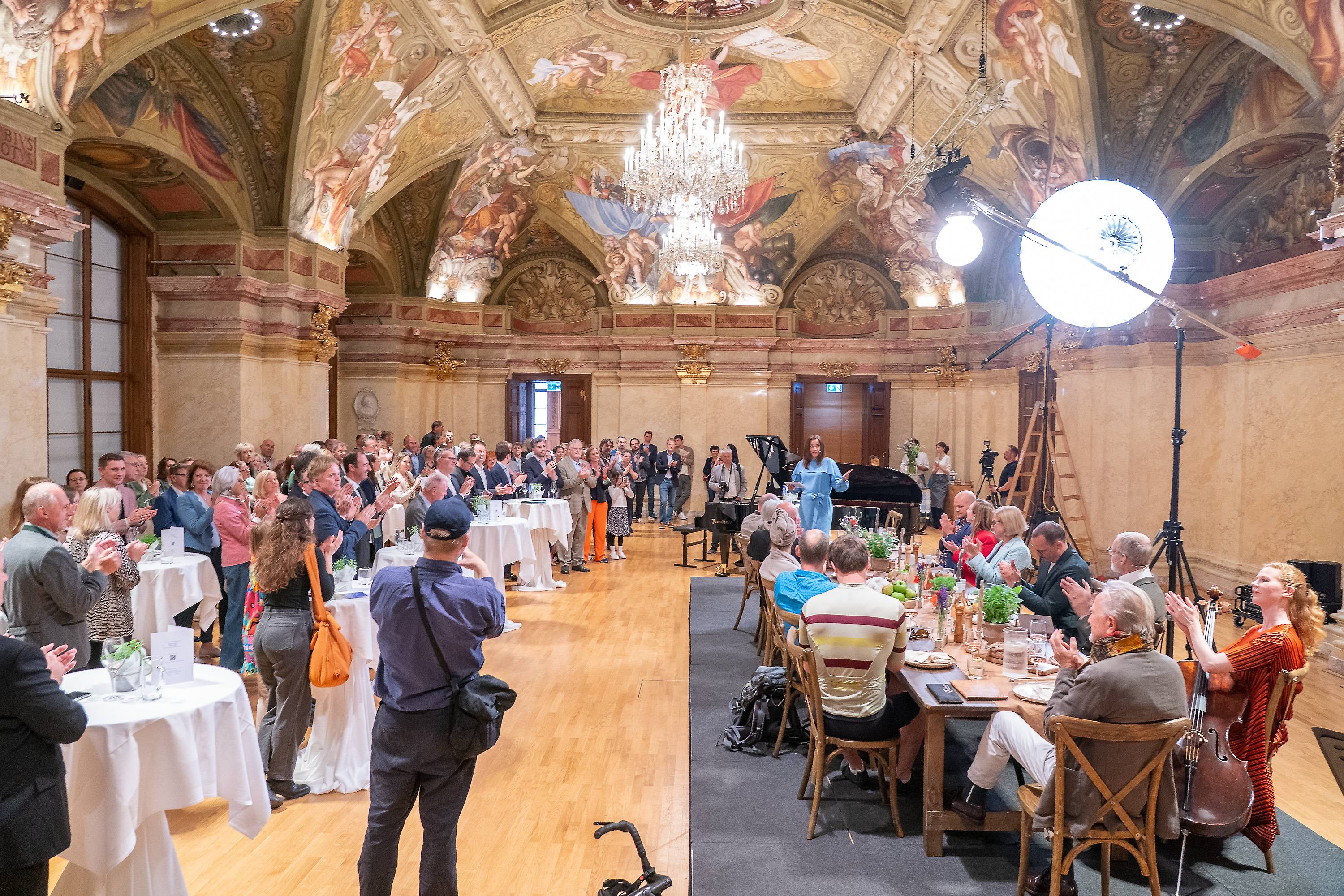 Darum war der Auftakt-Event im Palais Niederösterreich zugleich der Startschuss einer Werbekampagne, in der sich die Kulturschaffenden als Botschafterinnen und Botschafter für einen Kurzurlaub in den Wiener Alpen zur Verfügung stellten. Das Foto zum dazugehörigen Werbesujet, das ab 26. Mai die Wiener Plakatwände und Screens zieren wird, wurde übrigens gleich vor Ort geschossen. Denn wie oft trifft sich Niederösterreichs Kulturprominenz schon gemeinsam an einer Festtafel?