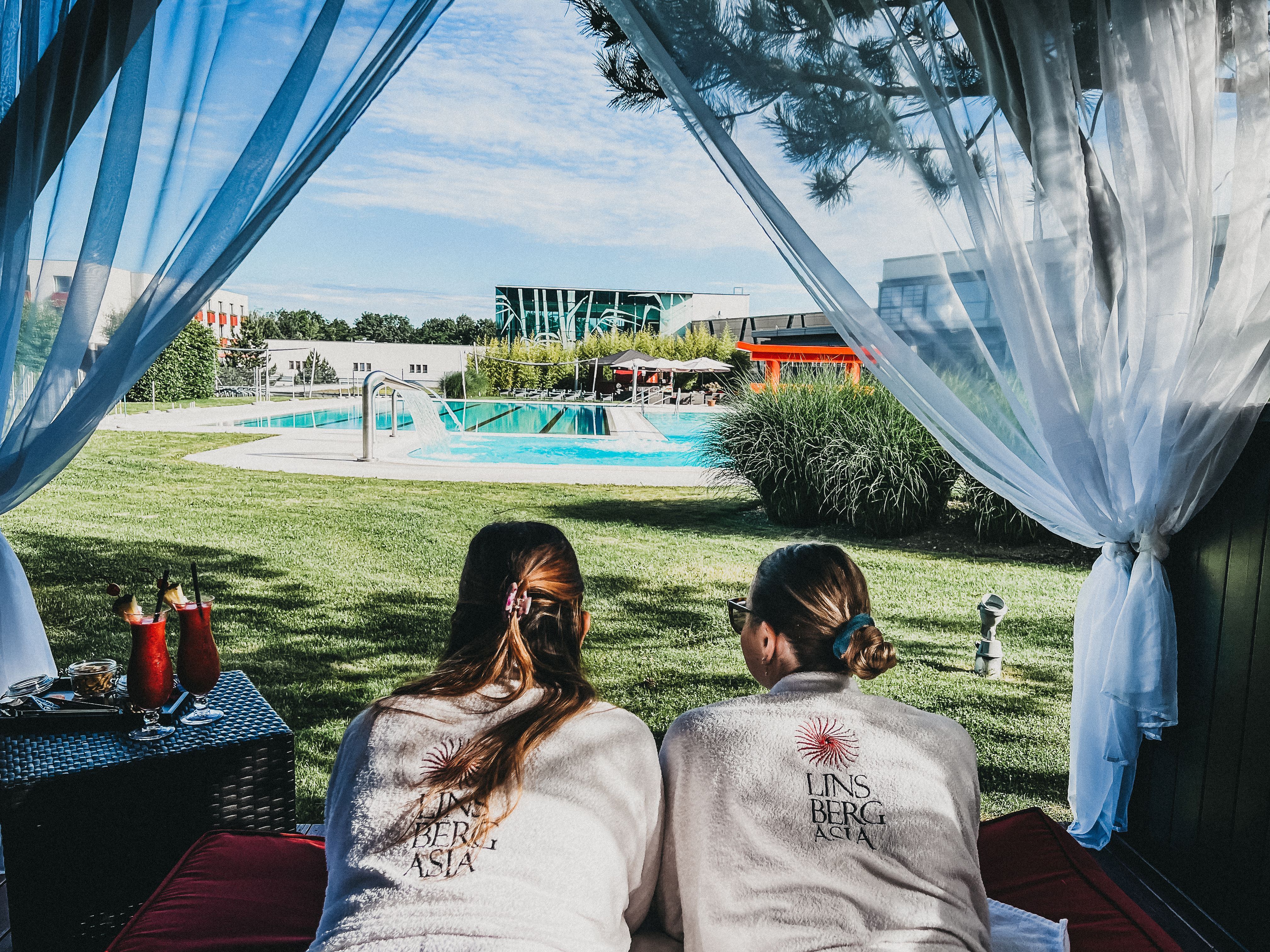 Entdecken Sie Erholung ohne weite Anreise – in der Therme Linsberg Asia, dem exklusiven Erwachsenenresort mit fernöstlichem Flair, großzügigen Außenbereichen und kulinarischen Genussmomenten, entspannen Sie stets wetterunabhängig: 11 Pools, 9 Saunen, täglich geführte Aufgüsse, bequeme Liegen sowie zahlreiche Rückzugsorte und schattige Plätzchen laden ganzjährig zum Wohlfühlen ein. Zusätzlich bieten Thai-Hütten und das 25-Meter-Sportbecken vielseitige Möglichkeiten zur aktiven Entspannung.
