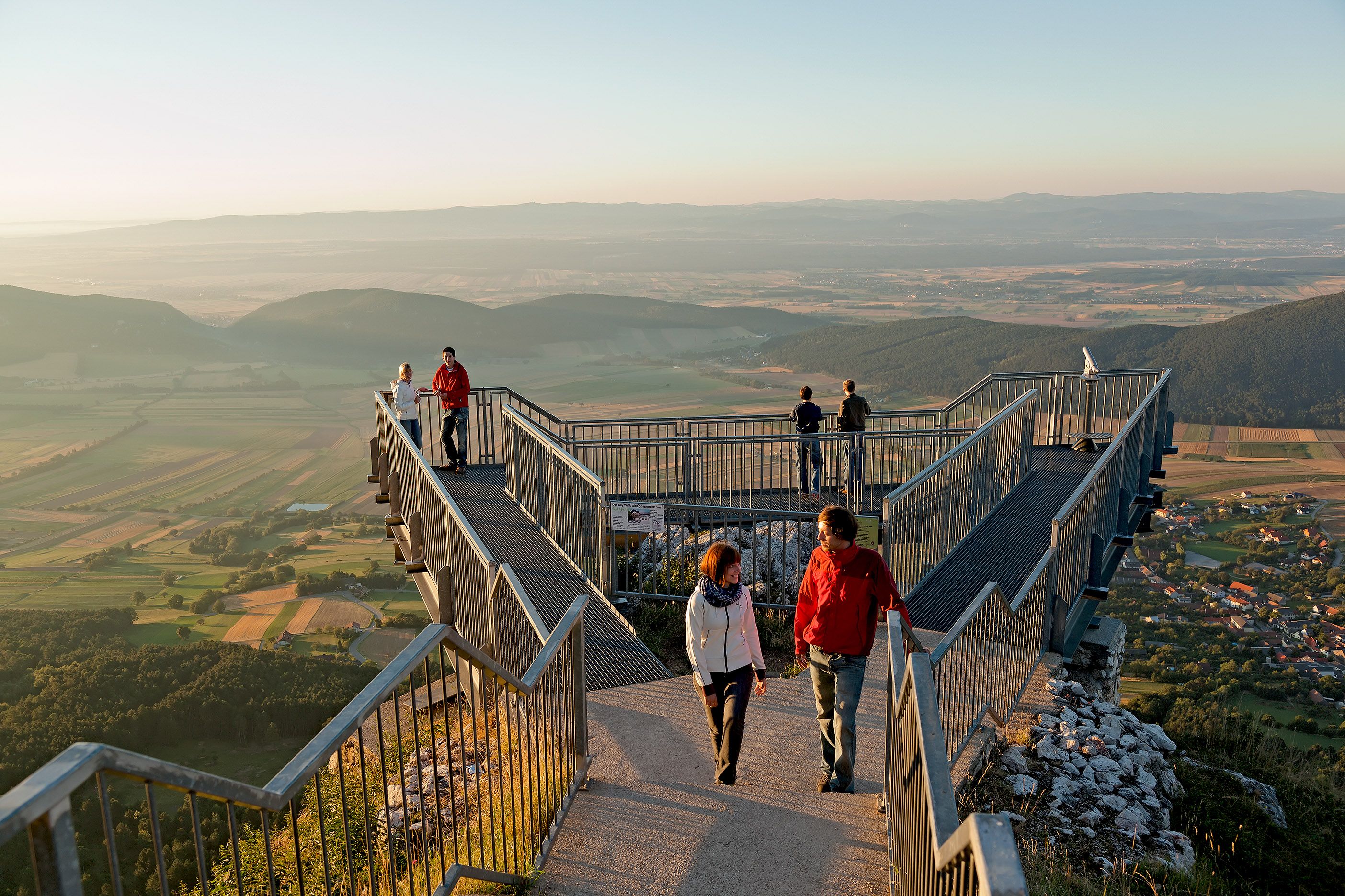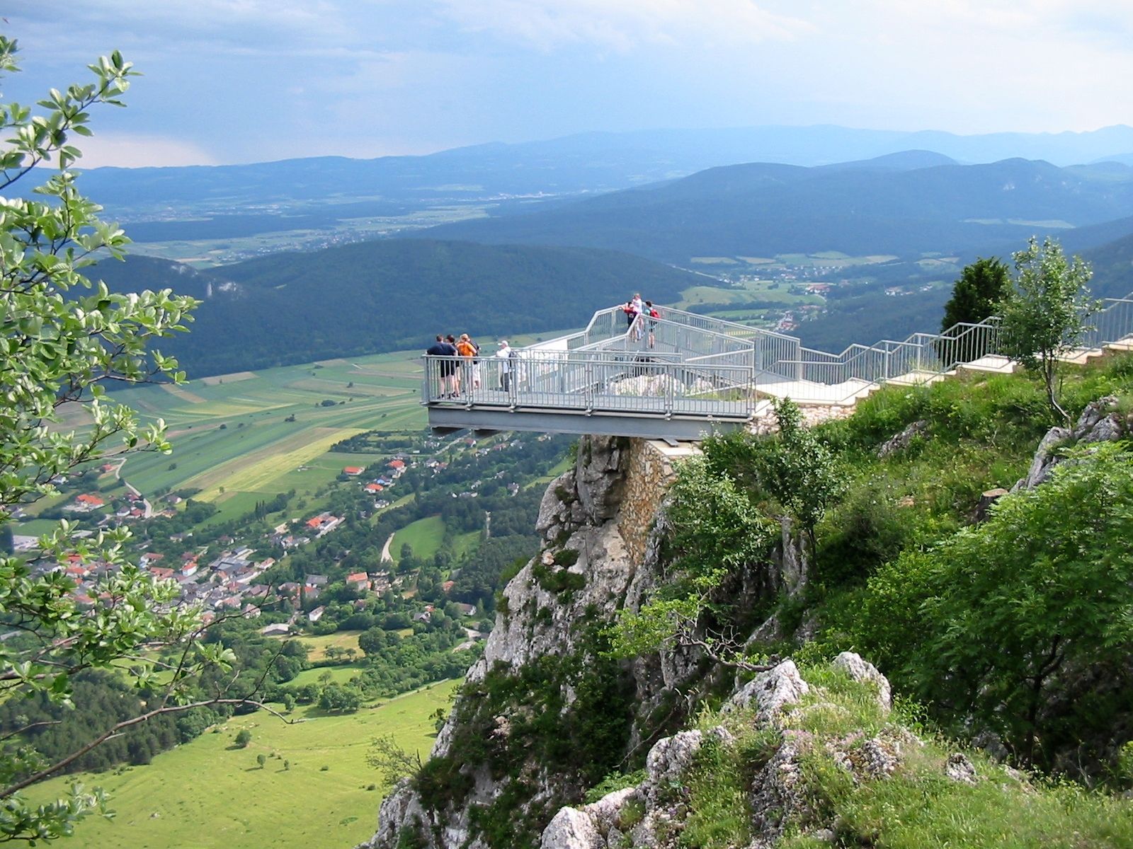Die Aussichtsterrasse Skywalk auf der Hohen Wand ist eine besondere Einrichtung des Naturparks. Die Aussichtsterrasse ist in den Felsen gebaut und bietet das Gefühl in der Luft zu stehen. Von hier aus hat man einen beeindruckenden Blick in die Tiefe und über den Wiener Alpenbogen. Bei guter Sicht bietet sich ein Weitblick bis zum Neusiedlersee.