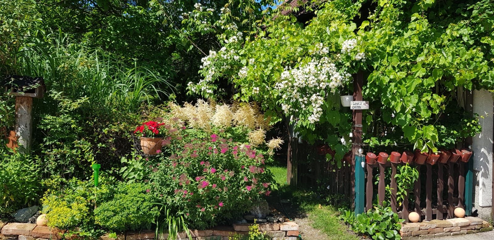 Liebevoll verschönert Andrea ihr privates Paradies zusätzlich mit allerlei Deko und selbstgemachten Holzschildern - ganz nach ihrem Motto "Schönheit liegt im Auge des Betrachters"