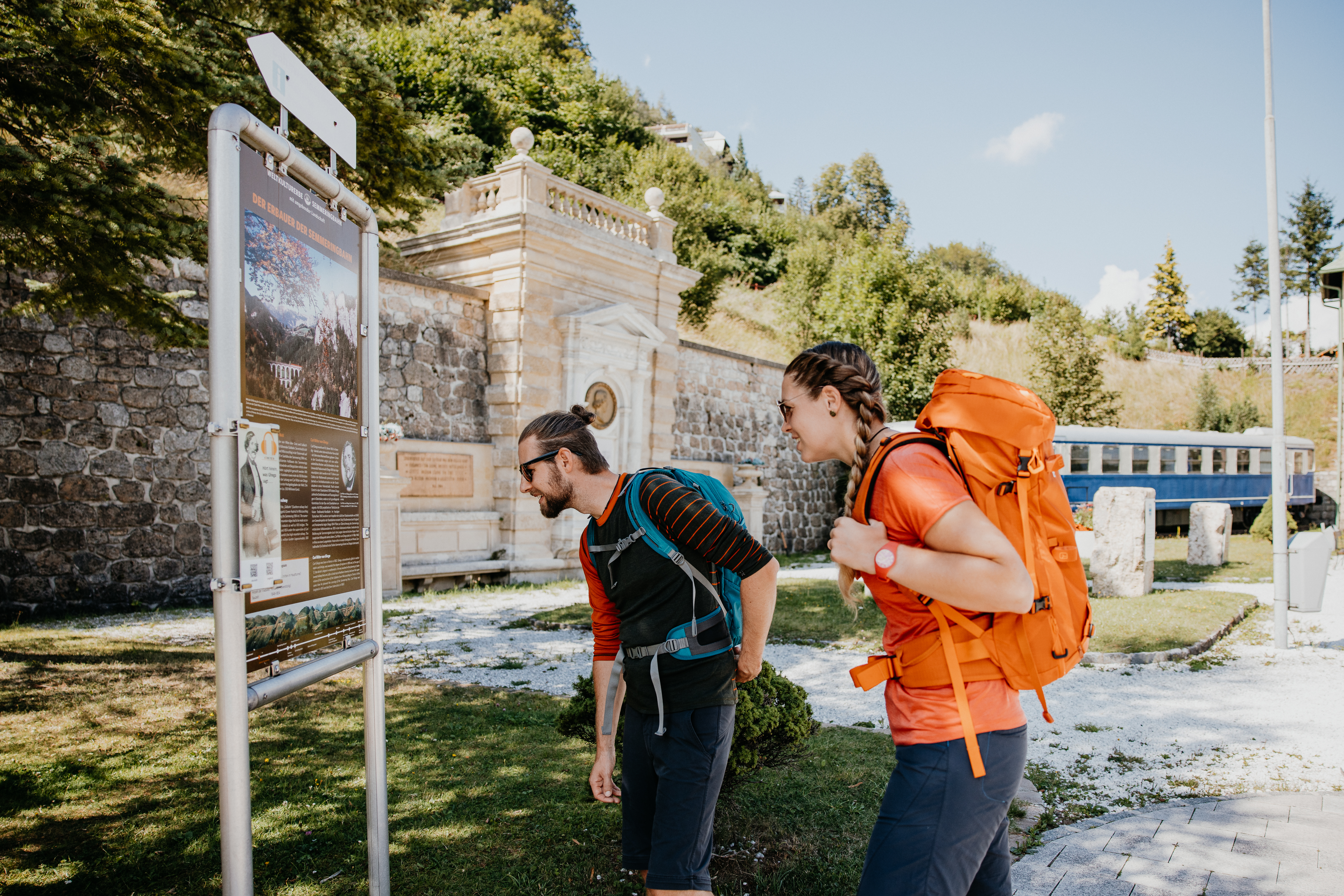 Jeder Schritt vorwärts ist am Bahnwanderweg zugleich einer zurück in die schillernde Vergangenheit des UNESCO-Welterbes Semmeringbahn. Audio-Tour und Infotafeln erzählen die Geschichte von rund 20.000 Arbeitern, die hier von 1848 bis 1854 mit Spitzhacke und Schwarzpulver den Weg für ein technisches Meisterwerk freimachten. Jeder Blick auf Carl von Ghegas „gemauerte Bahn“ mit ihren majestätischen Viadukten erfüllt uns Wandernde noch heute mit Ehrfurcht. Denn zur Zeit ihres Baus war die 41 Kilometer lange Semmeringbahn eine Weltsensation: Sie war die erste Gebirgsbahn Europas, überwand eine zerklüftete Landschaft und bis dahin für unmöglich gehaltene Steigungen.