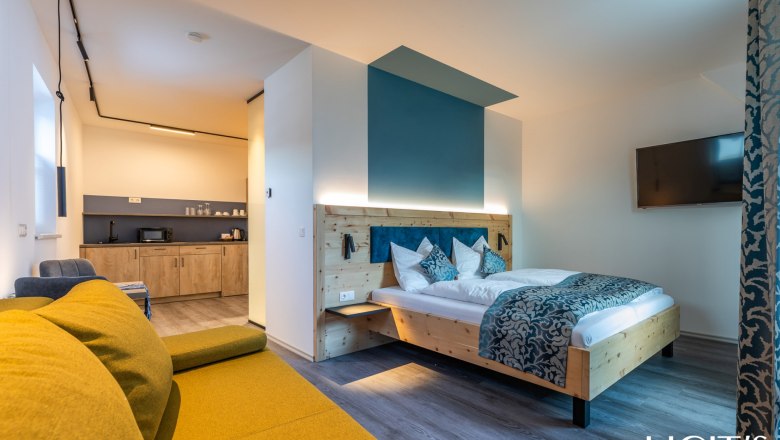 In Lichti’s Rooms and Appartements bleiben keine Radlerwünsche offen: Die Fahrräder können in einem eigenen, großen Raum abgestellt und mit einem Reparatur-Set auf Vordermann gebracht werden. Du hast den Helm zu Hause vergessen oder konntest dein Fahrrad nicht mitnehmen? Macht nichts, Helme und E-Bikes können an der Rezeption ausgeborgt werden – Helme sogar gebührenfrei. Durchgeschwitzte Fahrradtrikots werden dank des Wäscheservices wieder sauber. Bevor du wieder aufs Bike steigst, gibt’s noch eine Stärkung mit großem Frühstücksangebot – auch Menschen, die sich vegetarisch oder glutenfrei ernähren, müssen sich nicht hungrig auf den Weg machen. Wer sich lieber selbst um sein Frühstück kümmert, bucht am besten ein Appartement und nutzt die vollausgestattete Küche.