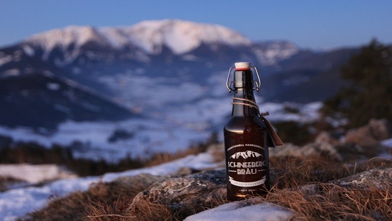 Nur beste Zutaten und reinstes Wasser aus dem Schneebergland werden zur Herstellung des obergärigen Schneebergbräu verwendet. Der Kleinstbetrieb in Würflach braut in handwerklicher Machart vier naturtrübe Sorten Weissbier, wobei manche Spezialitäten nur saisonal verfügbar sind. Auch nicht schlecht: das schöne Logo auf den Flaschen und Gläsern und die Lieferung in hochwertigen Holzkisten.