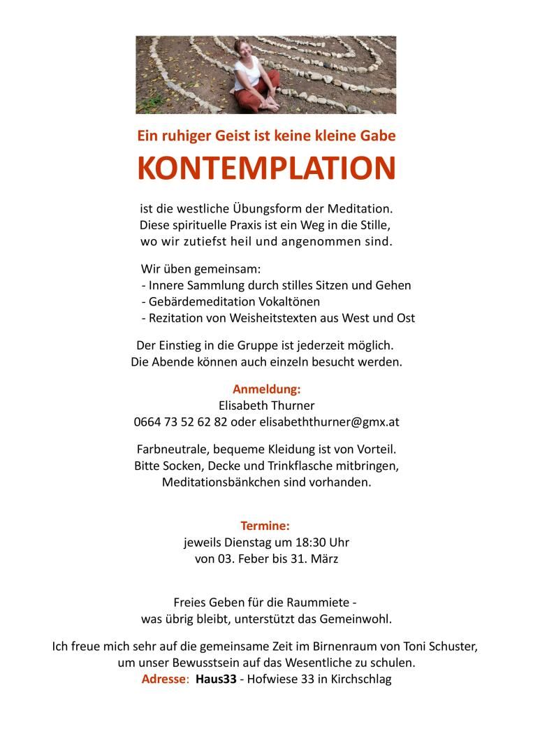 ©©Haus33Kontemplation mit Elisabeth Thurner31.03.26, 18:30 - 20:00 Uhr / Haus 33, 2860 Kirchschlag in der Buckligen Weltmehr erfahren