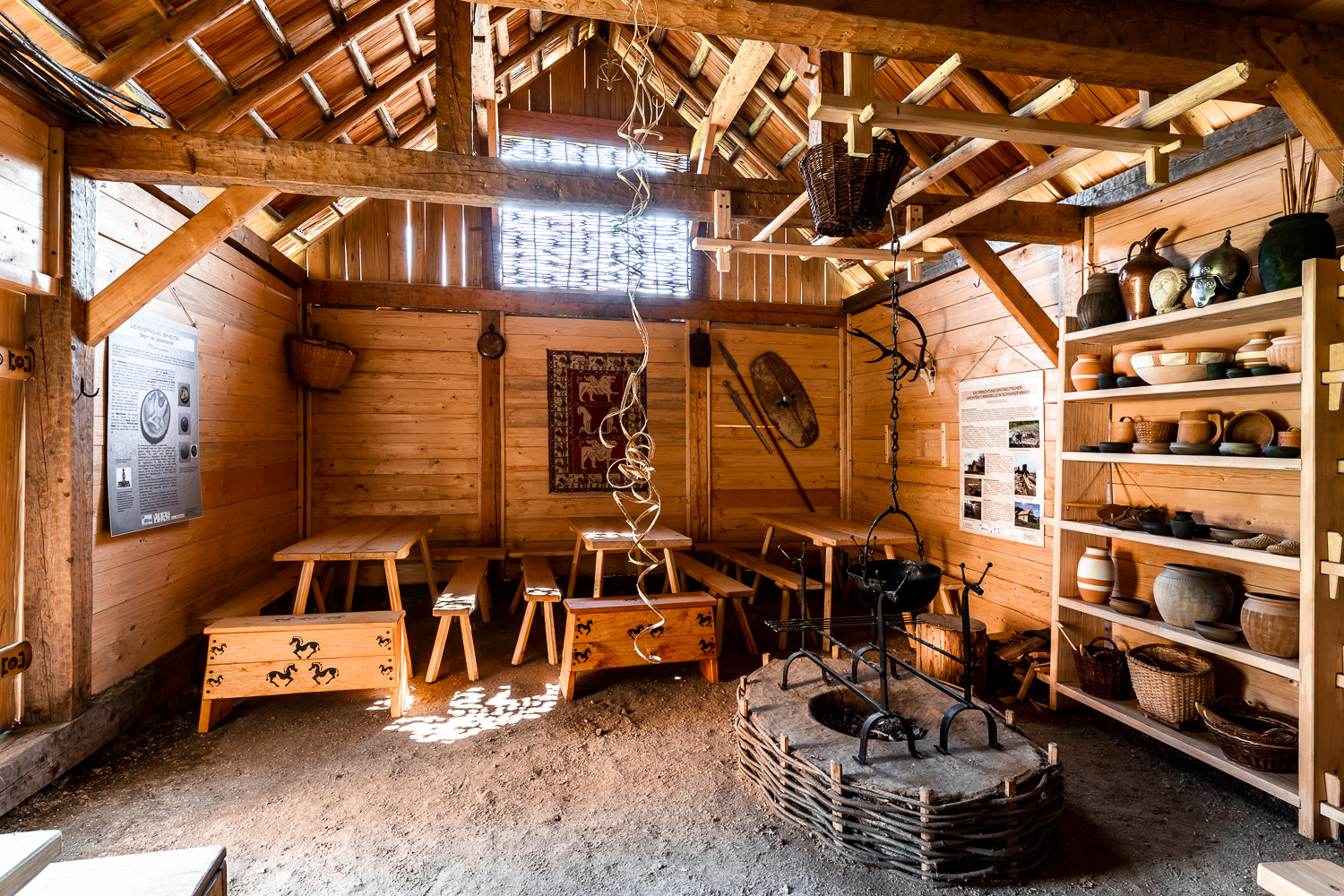 Ein Ausstellungsraum mit Originalfunden und multimedialer Präsentation ergänzt die nachgebauten Hütten. So verbindet das Keltendorf Forschung mit Erlebnis – informativ, anschaulich und authentisch. Selbst Funde aus der Kupferzeit (3.000 v. Chr.) können bestaunt werden.