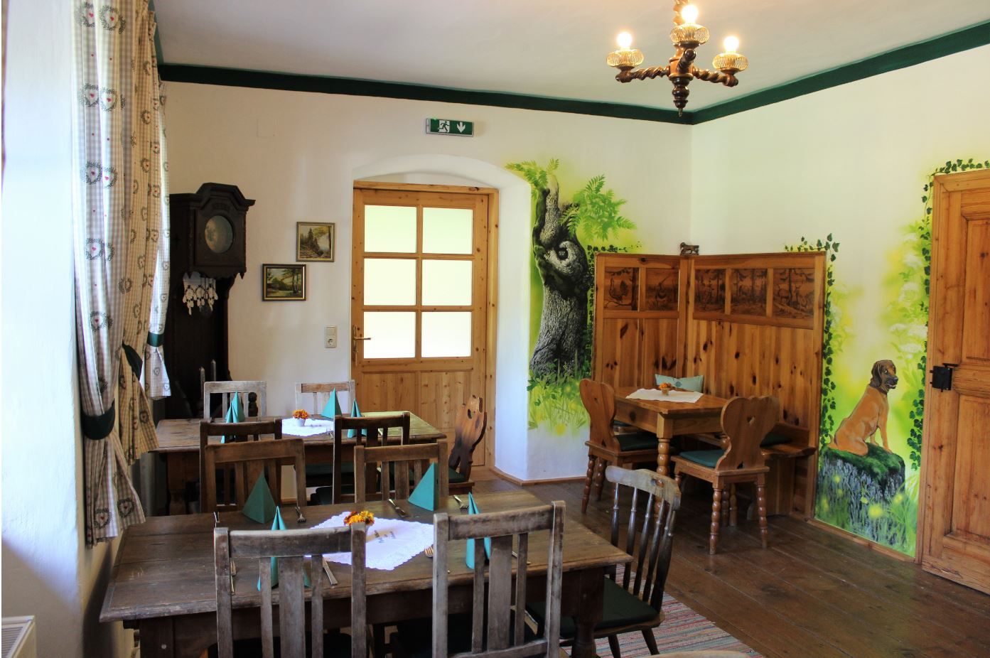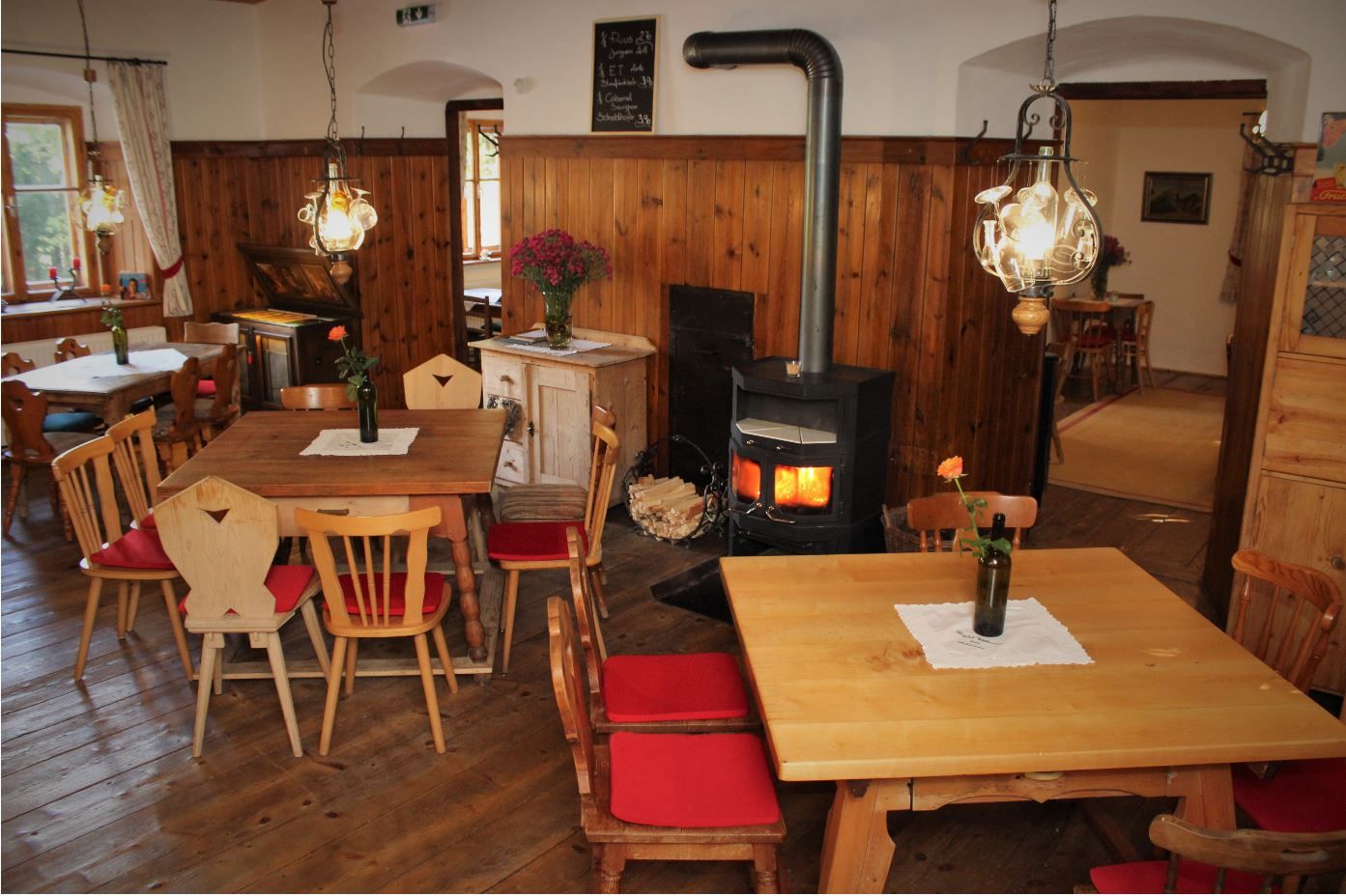 Die Küche zeichnet sich vor allem durch eine gutbürgerliche, hausgemachte Speise- und Jausenkarte mit Produkten aus der Region aus. Bis zu 60 Personen haben in Schank- und Gastzimmern Platz.