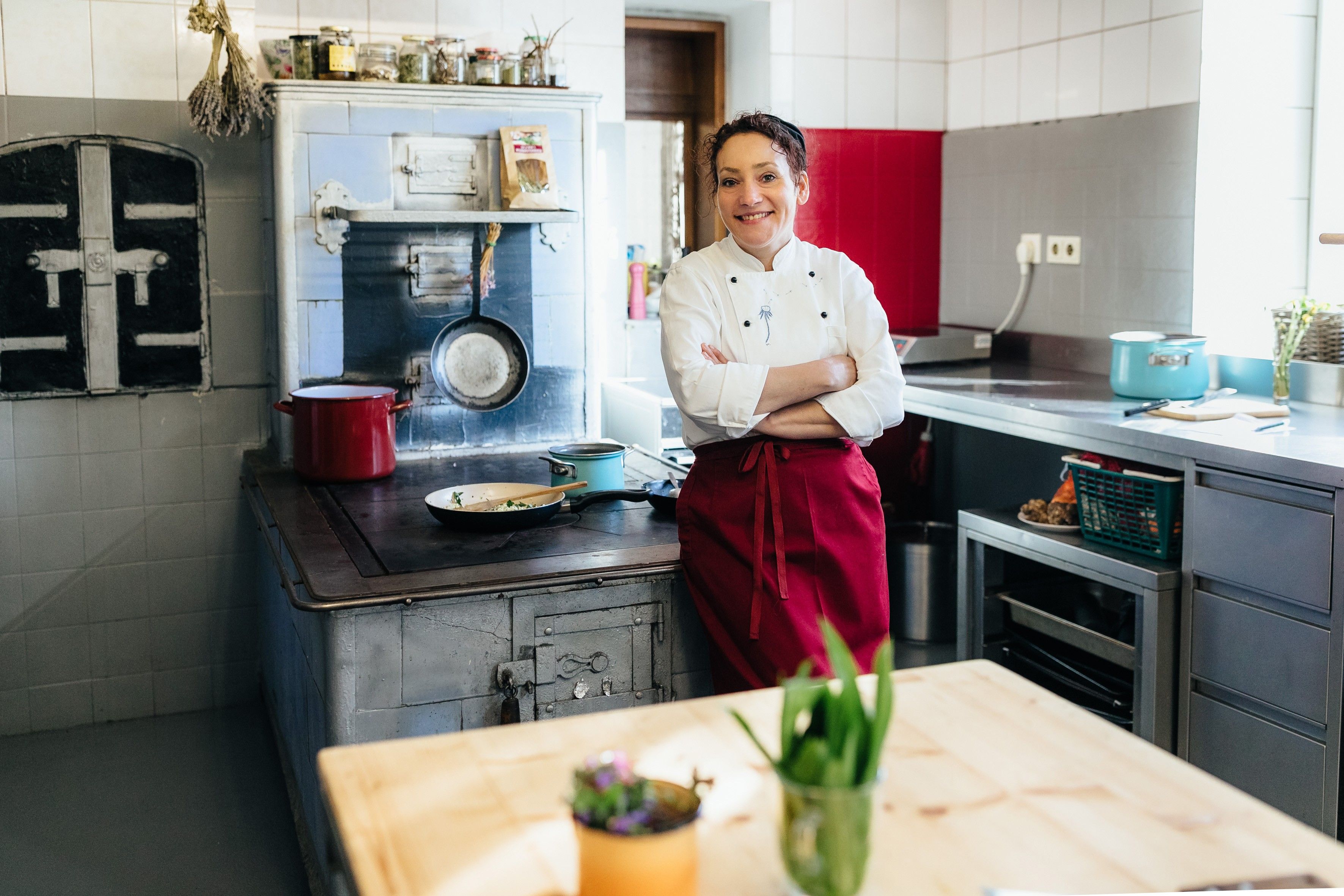 Wer einmal bei der Kräuterwirtin Gerda Stocker in Lembach war, weiß: Hier wächst das Menü direkt vor der Haustür. Auf den umliegenden Wiesen sammelt sie Gänseblümchen, Spitzwegerich oder Löwenzahn. Mit ihrem fast 100 Jahre alten Holzofen werden daraus Gerichte gekocht, die ebenso bodenständig wie besonders sind. Nicht, weil das gerade modern ist - sondern aus Überzeugung und Erfahrung.