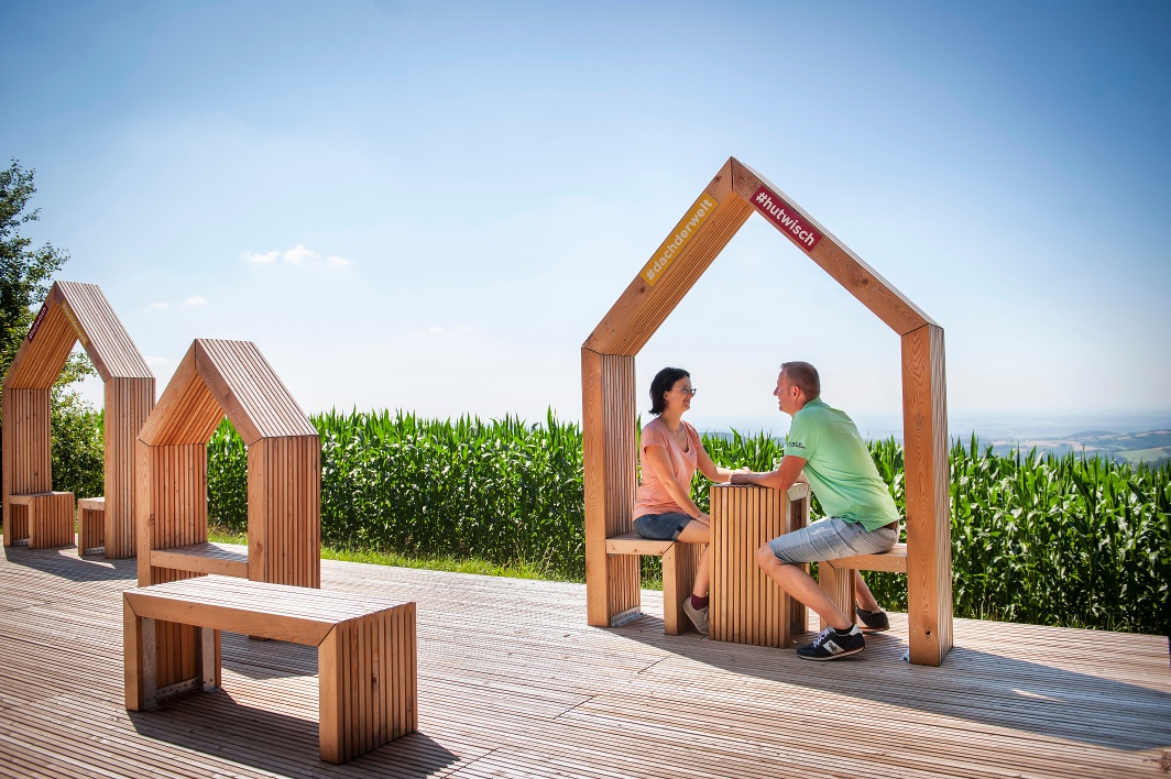 Der Rundweg mit den Bakabu-Hörerlebnisstationen führt von Hochneukirchen auf die Hutwischwarte und wieder retour.