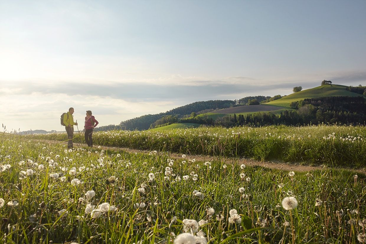 Die Route geht vom Kurort Bad Schönau bis nach Krumbach über die Höhenrücken mit atemberaubendem Blick auf Schloss Krumbach.