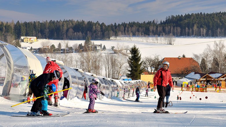 The extended drag lift expands the family ski area of the Wexlarena, with a magic carpet ride, winter adventure land and toboggan run – floodlit!