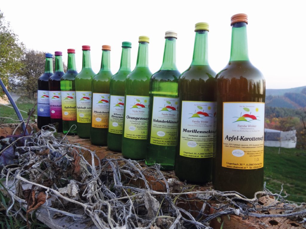 The Winkler family from Ungerbach in Kirchschlag has been producing fruit cider since 1985. In recent years, the range has been constantly expanded and now includes a wide variety of fruit juices as well as brandies and cider. The apples and pears for the juices come from the region and are processed with the utmost care by the whole family. The apple juice and the different types of fruit - such as peach, apple-carrot, apricot or blackcurrant nectar - are particularly popular and can also be tasted in many regional businesses. The juices are also available in 0.25 bottles as a popular souvenir. The entire product range is available to buy from the farm in Ungerbach in the middle of the idyllic Buckln in the Land of 1000 Hills and from many partner businesses.