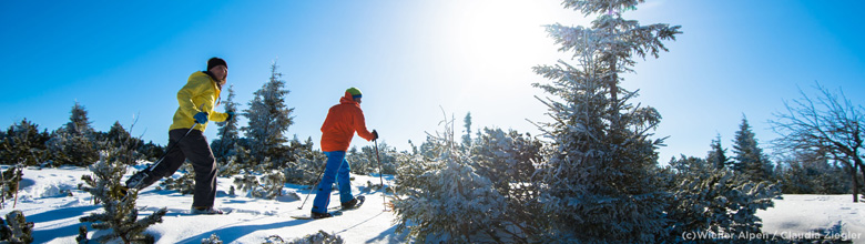 Snowshoeing in the Viennese Alps promises enchanted winter forests, glistening snow, and red cheeks! You can comfortably reach the deep snow and seclusion of the mountains with the Rax cableway. Snowshoeing is easy to learn. All the equipment you need is readily available, and is cheap to hire.