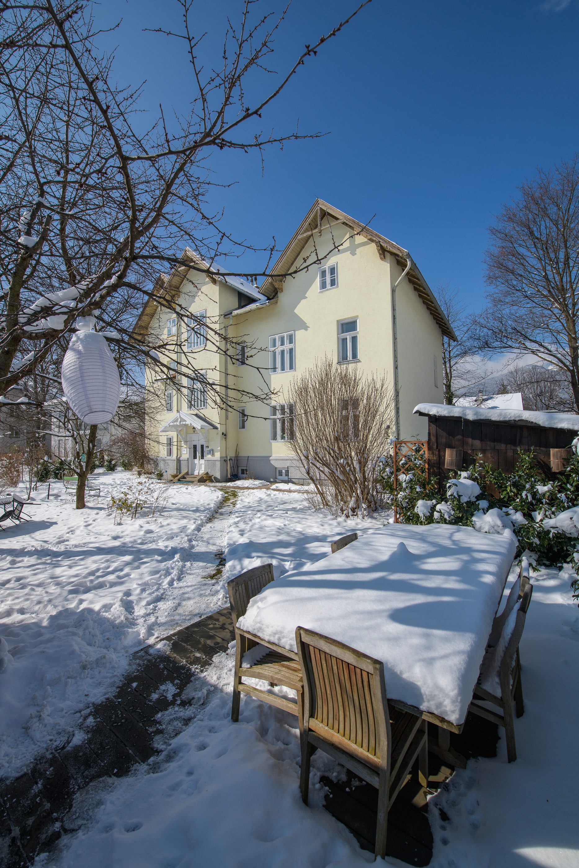 In the heart of Reichenau an der Rax is the Blauer Spatz country house, built in the classic villa style of the 19th century. The building was extensively renovated in 2015 and now offers 7 top-renovated vacation apartments between 20 and 100 m², for 1 - 6 people. There is also a small but beautiful garden with fruit trees, berry bushes, a 30 m² wooden deck, a cozy outdoor sauna for up to 4 people and a cold water outdoor shower. A ski and bicycle cellar is also available.