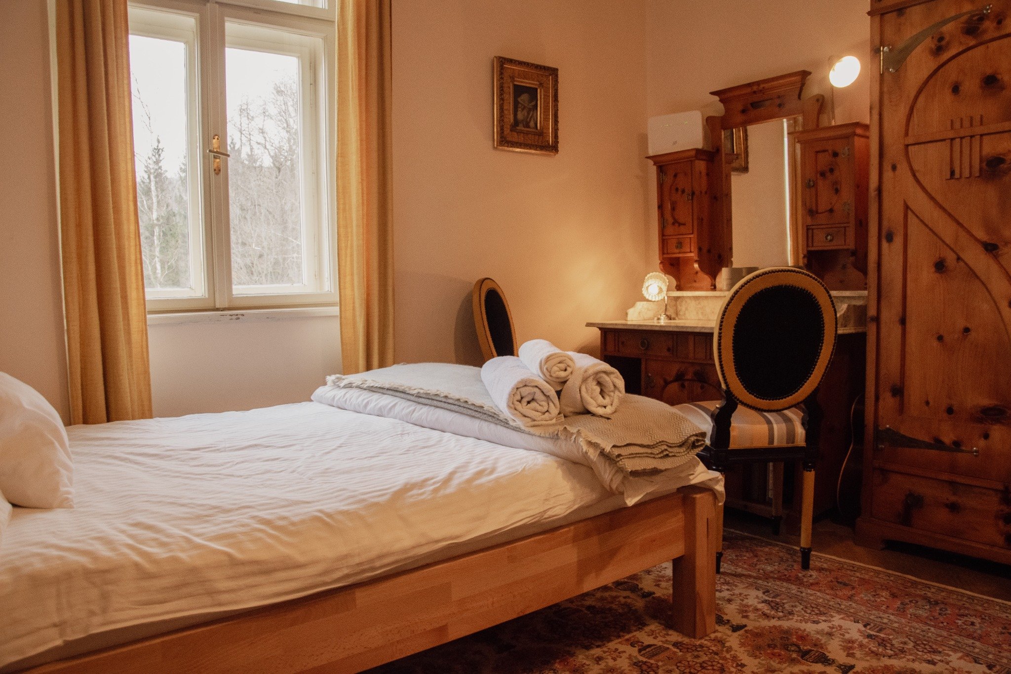 The entire house is reserved for our guests, there are no common areas. Our guests have full access to the second floor (with two bedrooms, a kitchen, a dining room, a living room, a bathroom and a loggia) and the surrounding garden - including the small forest on the other side of the jetty and a pretty stream running through the backyard of the house. The basement, attic and second floor are not accessible and are not shown in the listing.