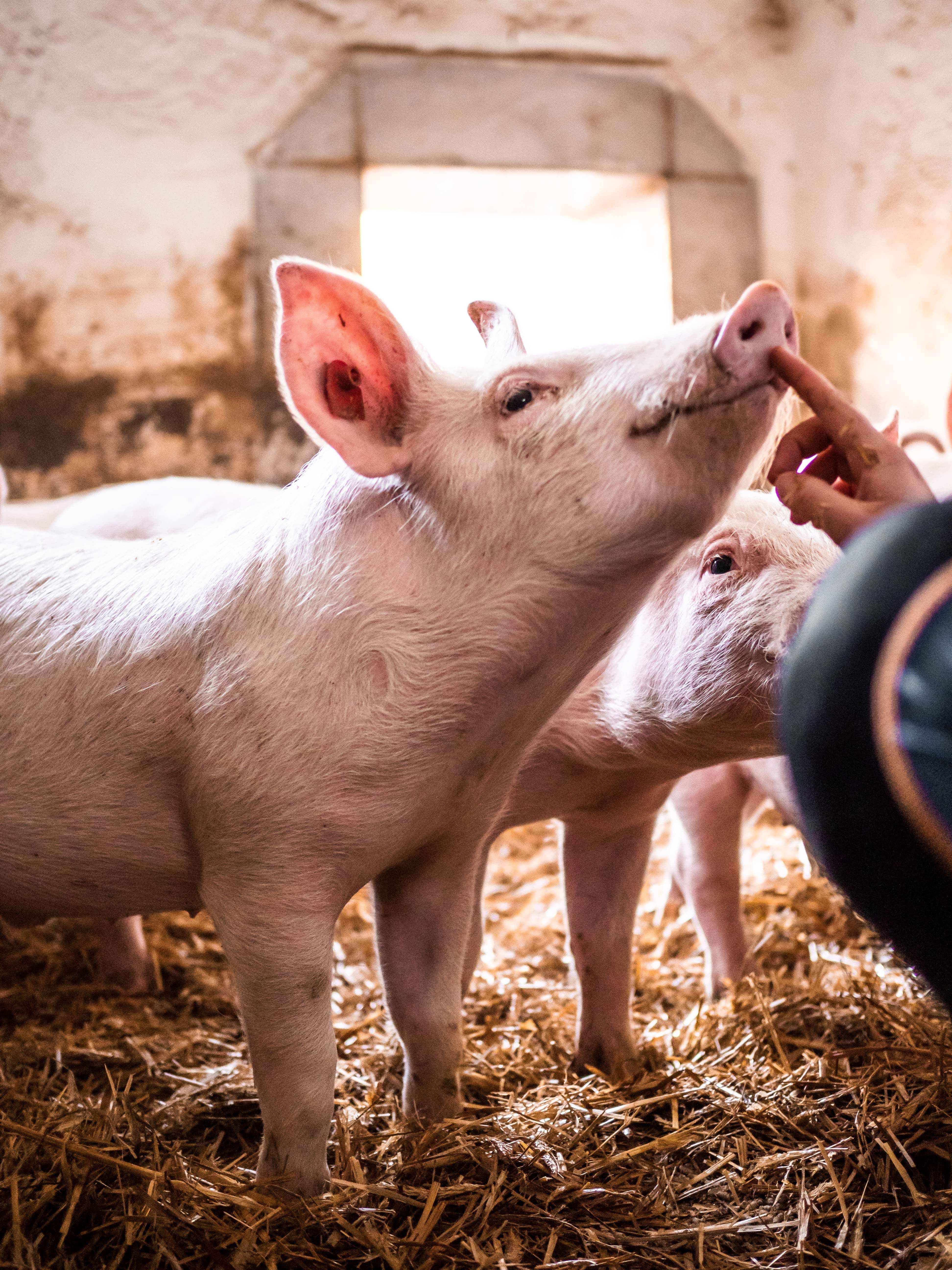 Cattle, pigs and chickens on the organic farm enjoy the large, lush meadows around the farm, can rummage in the straw, simply let off steam or live out their very own idiosyncrasies such as scratching in the ground or sand bathing.