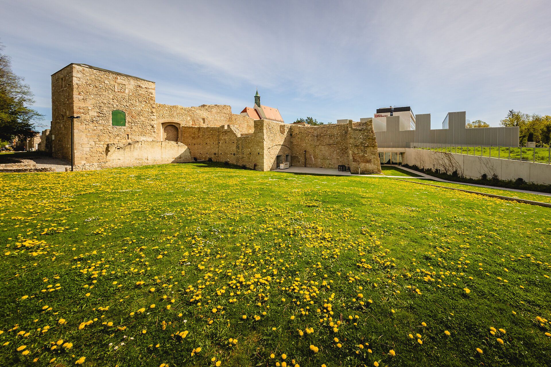 Protected by the thick walls of the Alte Bastei, you can sit on the terrace of the "Löwenherz im Stadtpark" wine tavern near the Kasematten. From here, you have a magnificent view of the city park.
