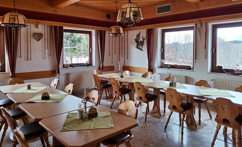 Für Radfahrer und Wanderer liegt das Lokal mit der großen Sonnenterrasse aus eigenem mondgeschlagenen Holz ausgesprochen günstig.