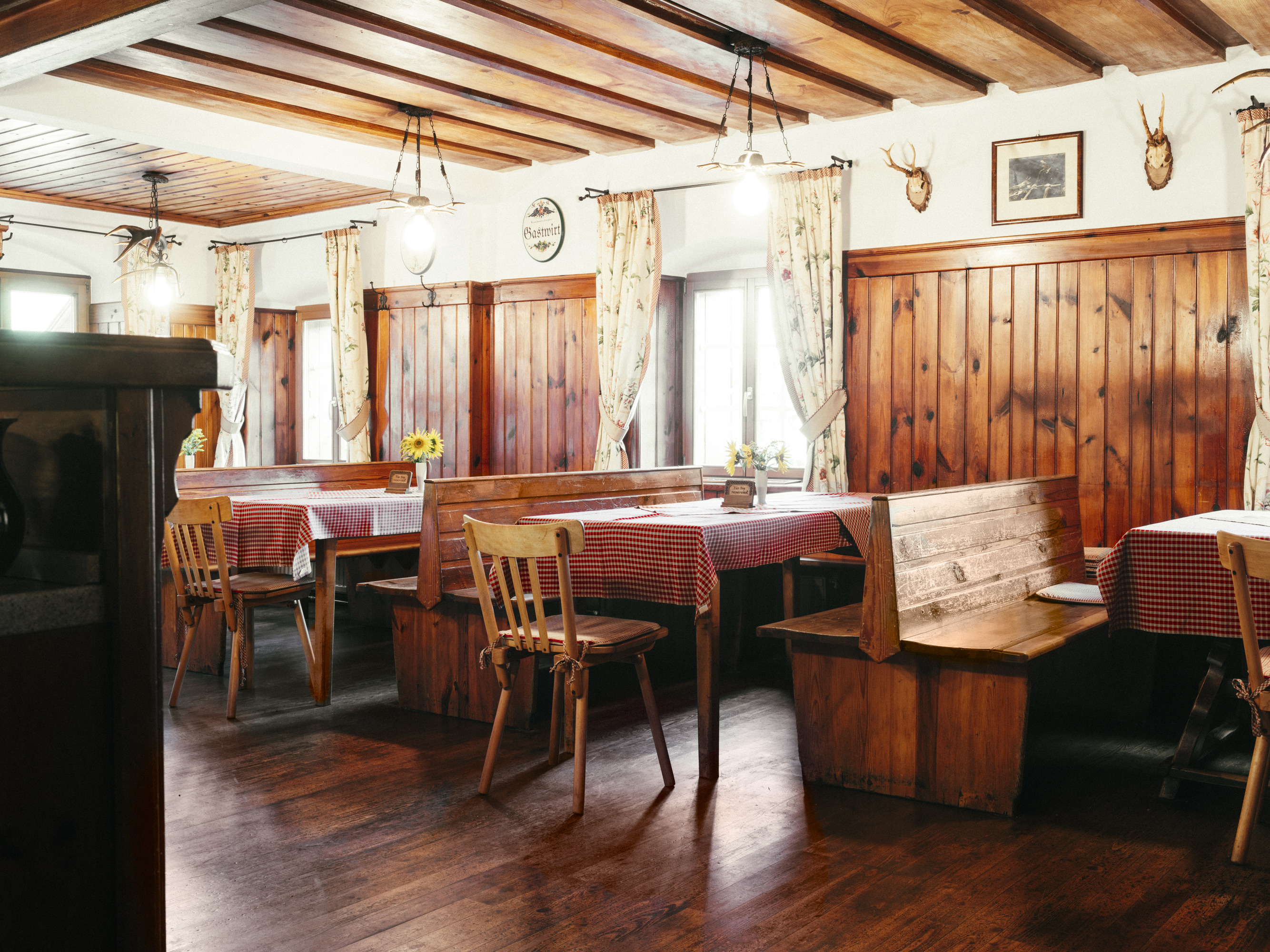 Wohin die Besucherinnen und Besucher im Gasthaus Buchegger auch blicken, der hohe Qualitätsanspruch ist bis ins kleinste Detail erkennbar. In der rustikal und gemütlich wirkenden Gaststube bildet eine markante Schank das Herzstück. Für wohlig warme Momente in der kalten Jahreszeit sorgt ein altertümlicher Holzofen. Einladend in den Sommermonaten zeigt sich die Terrasse, umgeben von Weiden, Obstbäumen und dem Tiefenbach. Selbst produzierte Köstlichkeiten wie Bratwurst, Bauernbrot, Liköre, Schnaps, Most und Apfelsaft sind ab Hof zu erwerben. Wenige Meter von dem familiär geführten Wirtshaus entfernt, vorbei am historischen Mühlrad, verleiten komfortable Gästezimmer zu einem längeren Aufenthalt.