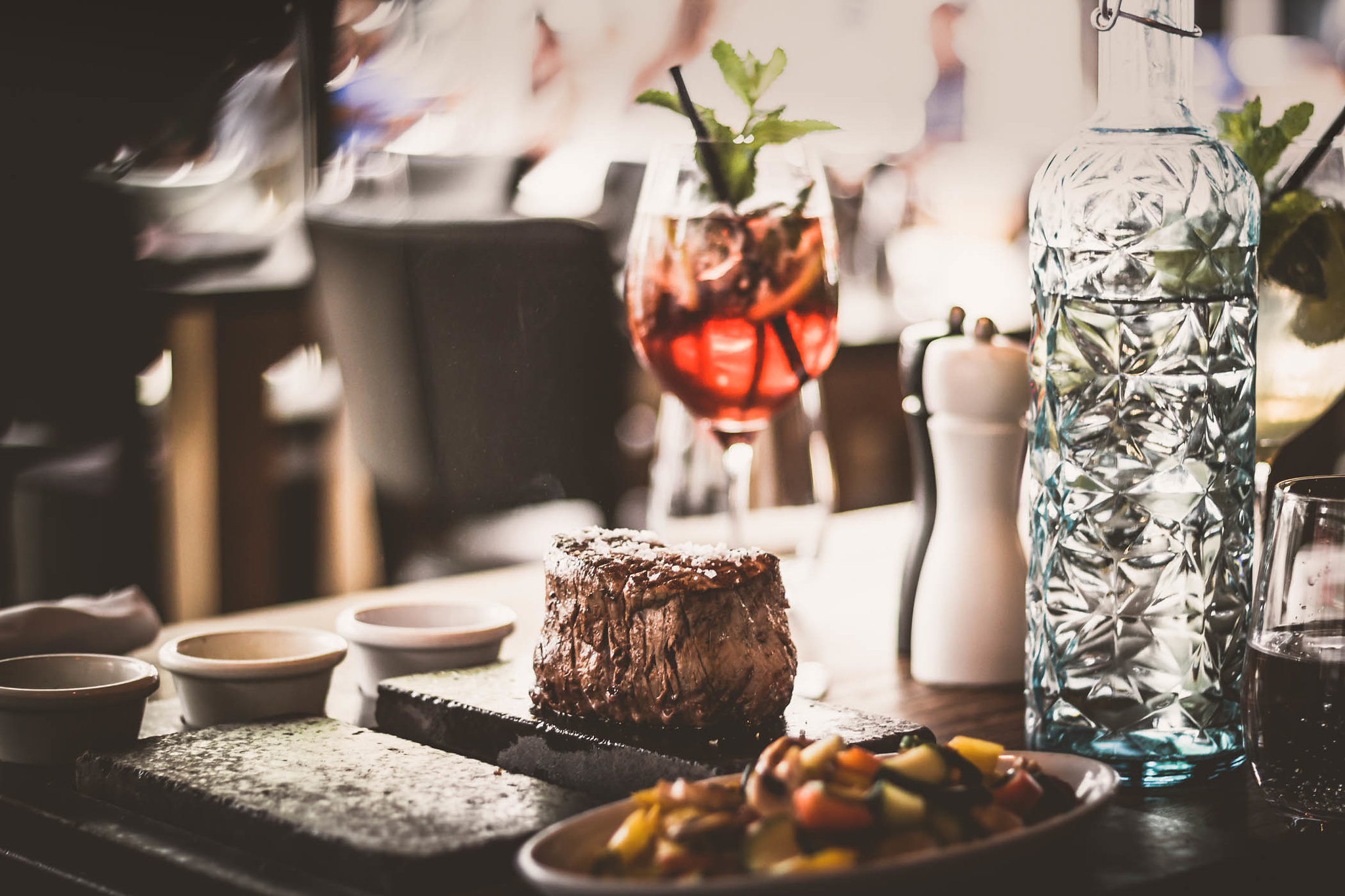 Alle US-Beef, Argentinischen Beef und Grilled Specials werden auf dem Original Schweizer Steakhouse-Brett serviert. Dank des einzigartigen 220 °C heißen Steins entscheidet der Kunde selbst, welchen Garpunkt sein Steak haben soll. Fertig grillen, nach individuellem Geschmack. Dazu gibt es hausgemachte Soßen und extra breit geschnittene House Fries so viel man mag. Selbstverständlich gibt es auch köstliche Suppen, Salate und Desserts.
