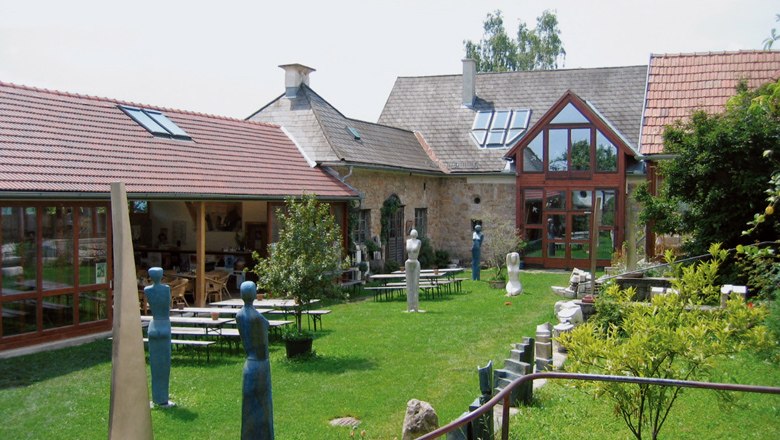 Kontinuierlich erneuerte Kunstwerke unter freiem Himmel kommunizieren mit der malerischen Umgebung und die angeschlossene Galerie präsentiert in wechselnden Ausstellungen die Werke angesehener Künstler. Nicht zuletzt locken die Köstlichkeiten der eigenen Bio-Landwirtschaft ins Schwarzatal zwischen Schneeberg und Rax.