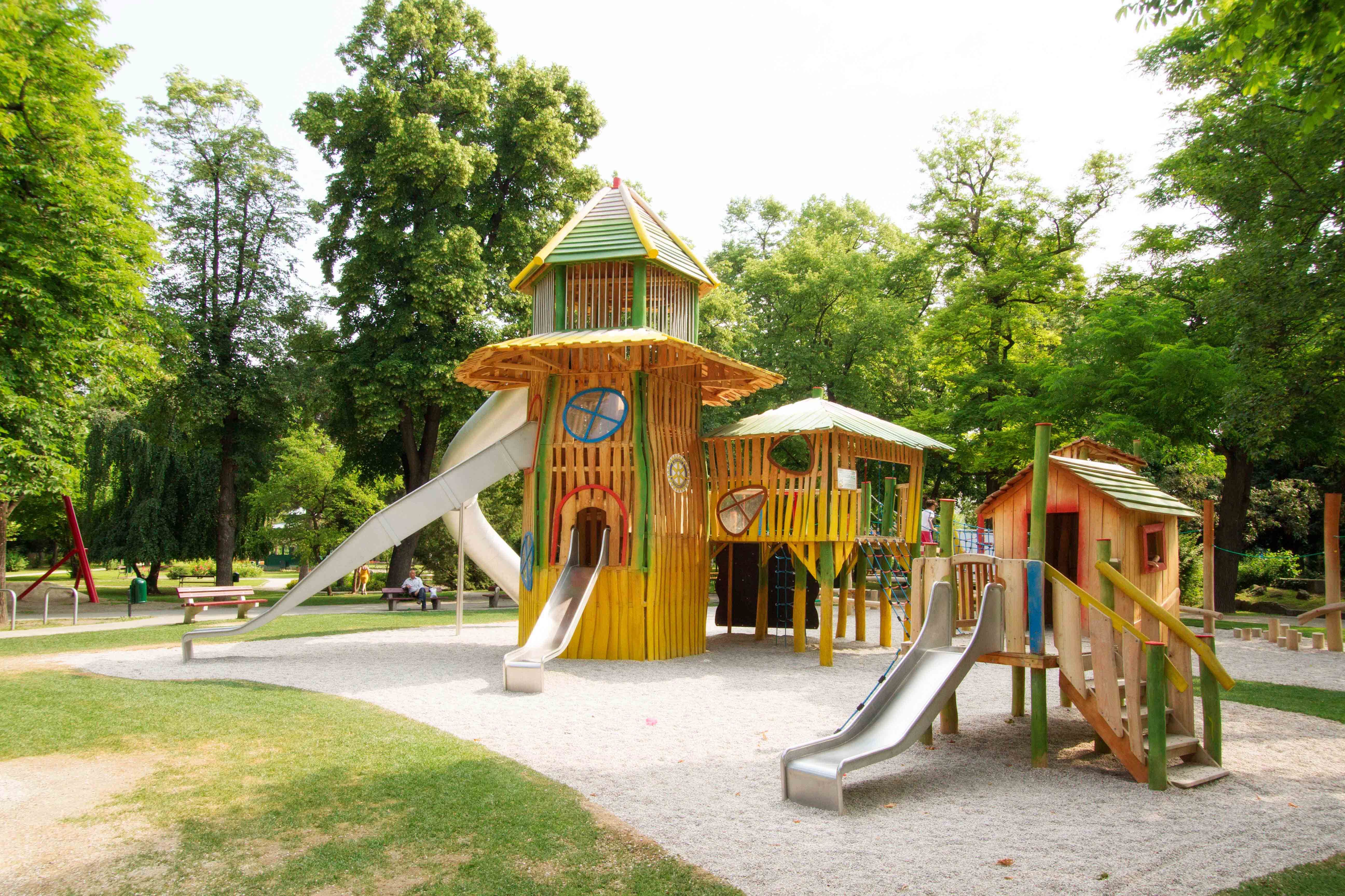Gleich mehrere tolle Attraktionen locken zum neuen Spielplatz im Stadtpark von Wiener Neustadt. Auf einer Fläche von insgesamt 3.500 Quadratmetern wird den Kindern mit Wasserspielen, Sandbaustelle und mehreren lustigen Kletter- und Rutschmöglichkeiten einiges geboten. Als absoluter Höhepunkt, im wahrsten Sinne des Wortes, präsentiert sich der bunte Spielturm - der höchste in ganz Niederösterreich! Auf der Seilbahn können die jungen Gäste scheinbar schwerelos durch den Stadtpark schweben.