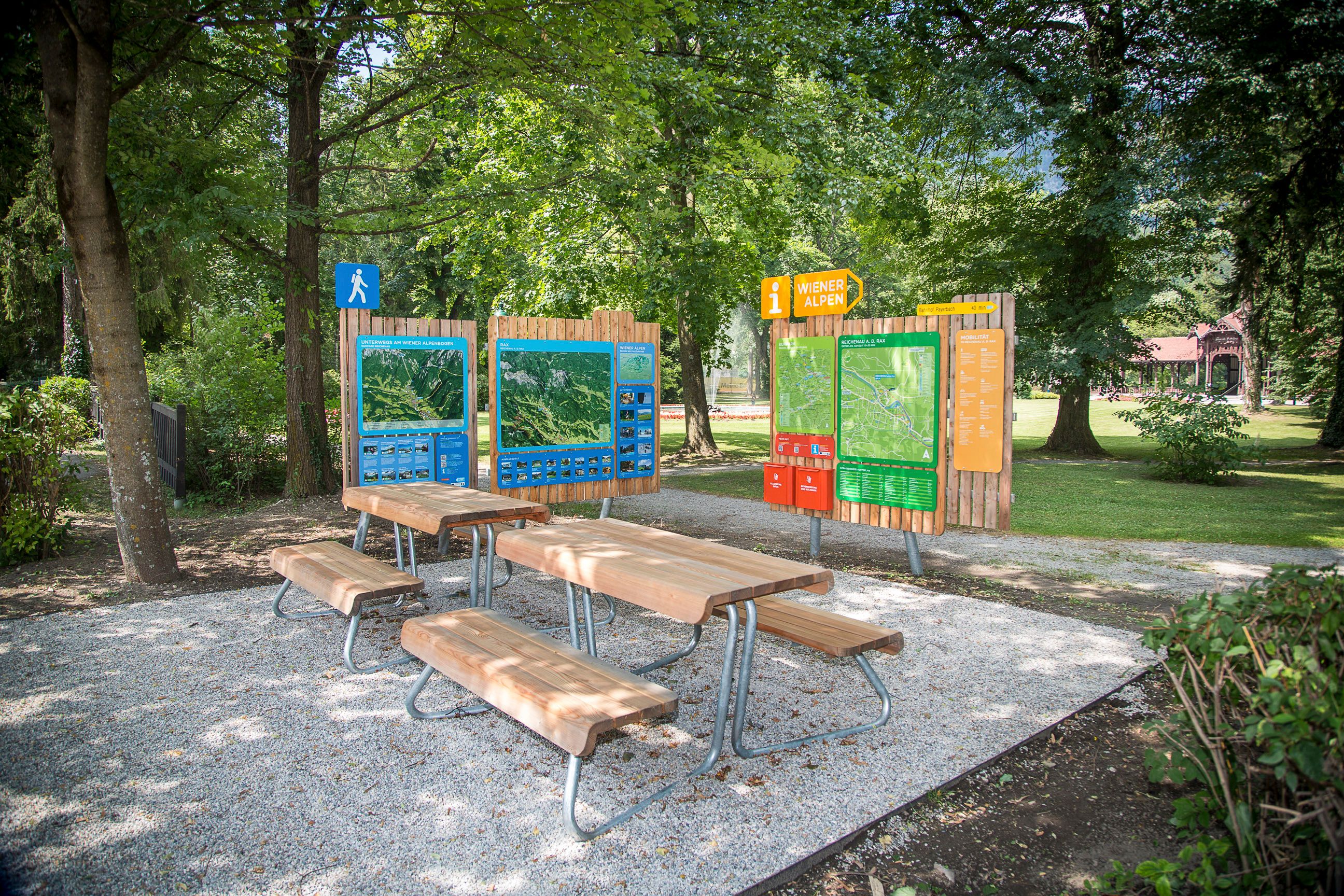 Der Wanderstartplatz in Reichenau bietet alle Informationen zu Wanderungen, Ausflugszielen und Erlebnissen in und rund um den Ort. Wer Bewegung mit Genuss verbinden möchte, kann seine Tour von hier aus zum Naturfreundehaus Knofeleben oder zur Speckbacherhüttestarten. Die meisten Wanderungen beginnen jedoch beim Schloss Reichenau, das nur etwa zehn Gehminuten entfernt liegt. Von dort aus führen zahlreiche Spazier- und Wanderwege durch die idyllische Umgebung – von kurzen Halbstundenrunden bis zu Wanderungen von bis zu zwei Stunden ist für jeden etwas dabei. Reichenau ist aber vor allem bekannt durch die Rax. DieRax-Seilbahnbringt Gäste in nur acht Minuten aufs Hochplateau und liegt im Ortsteil Hirschwang.