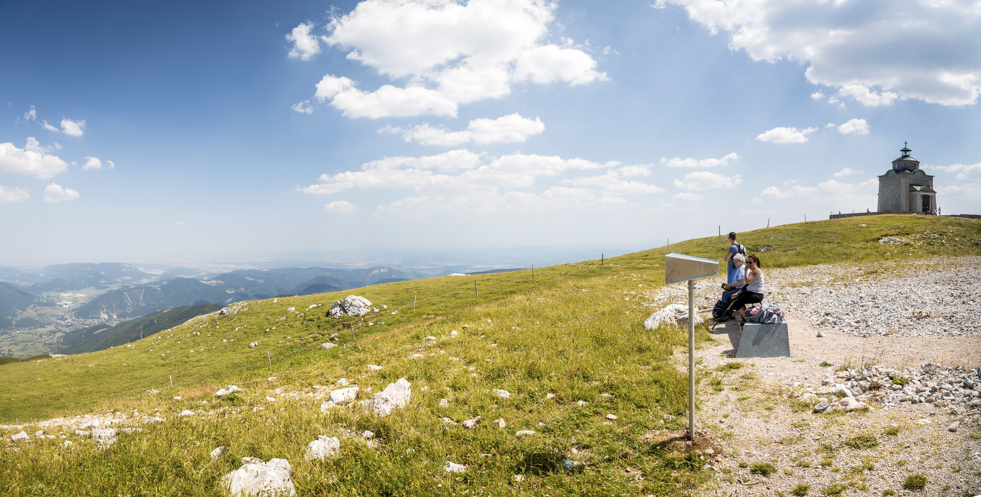 Standort/Aussicht: Am höchsten Berg Niederösterreichs befindet sich auf 1796 Höhenmetern die Elisabethkirche in unmittelbarer Nähe der Bergstation der Schneebergbahn und des Berggasthofs Hochschneeberg. Hier hat man vom Blickplatz eine Aussicht ins Tal und auf die wunderschöne Bergwelt ringsum.