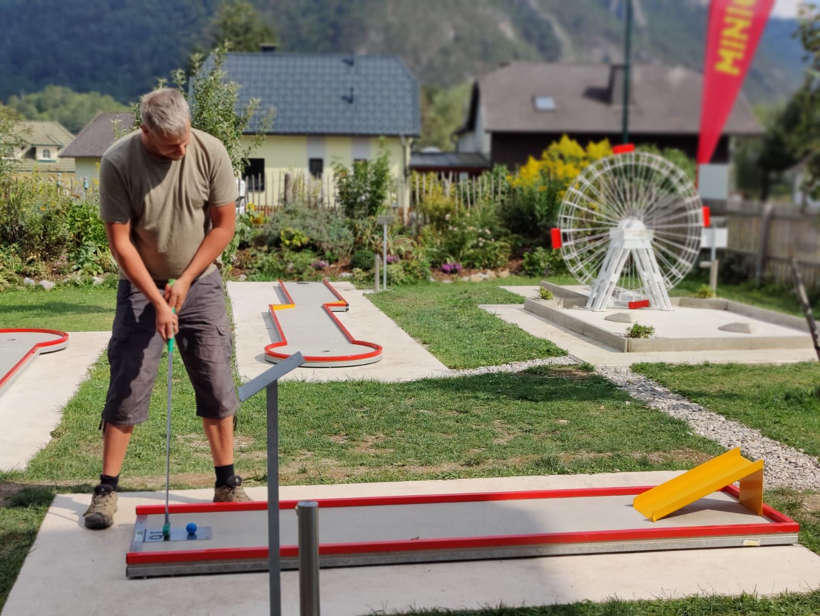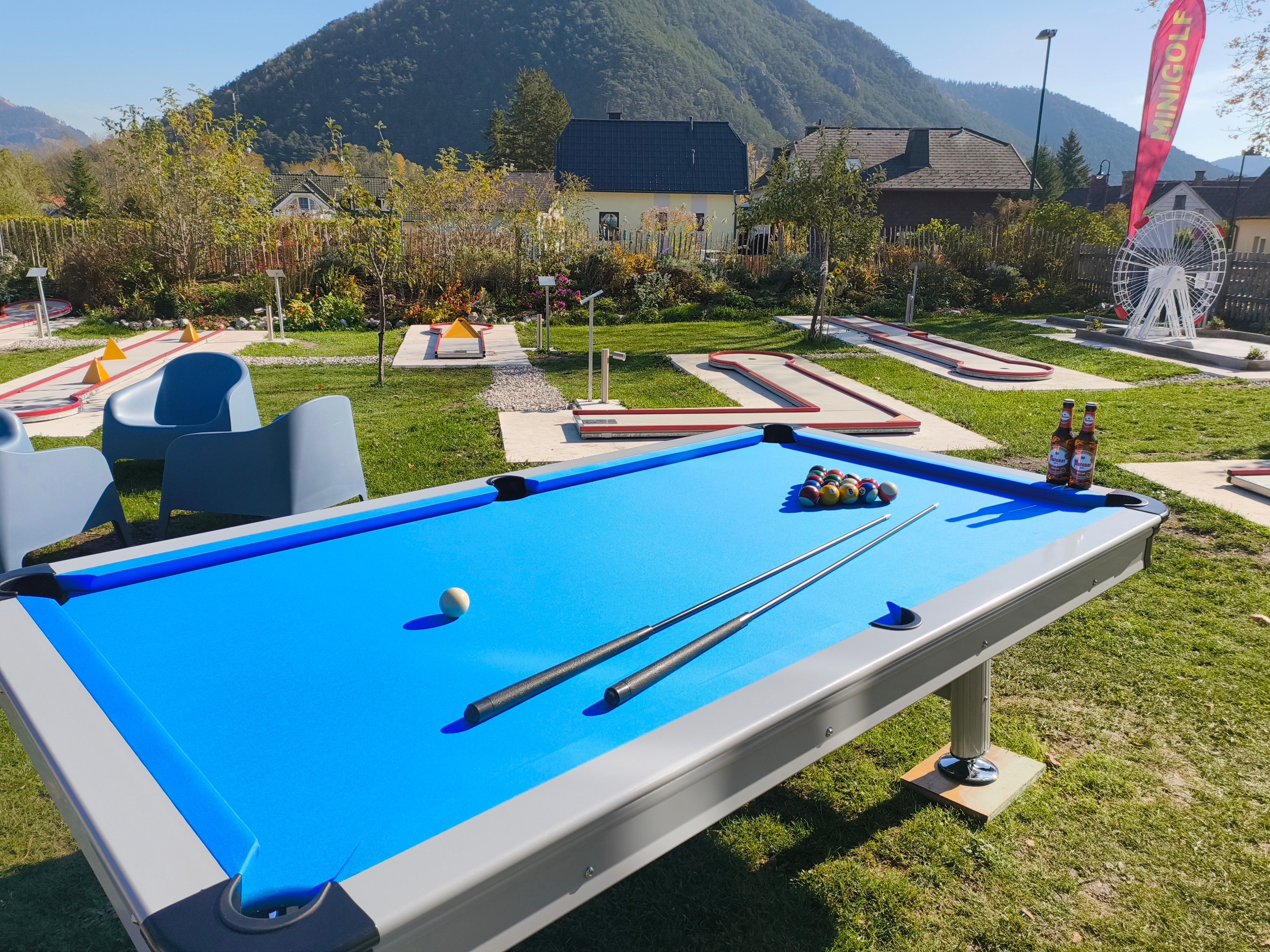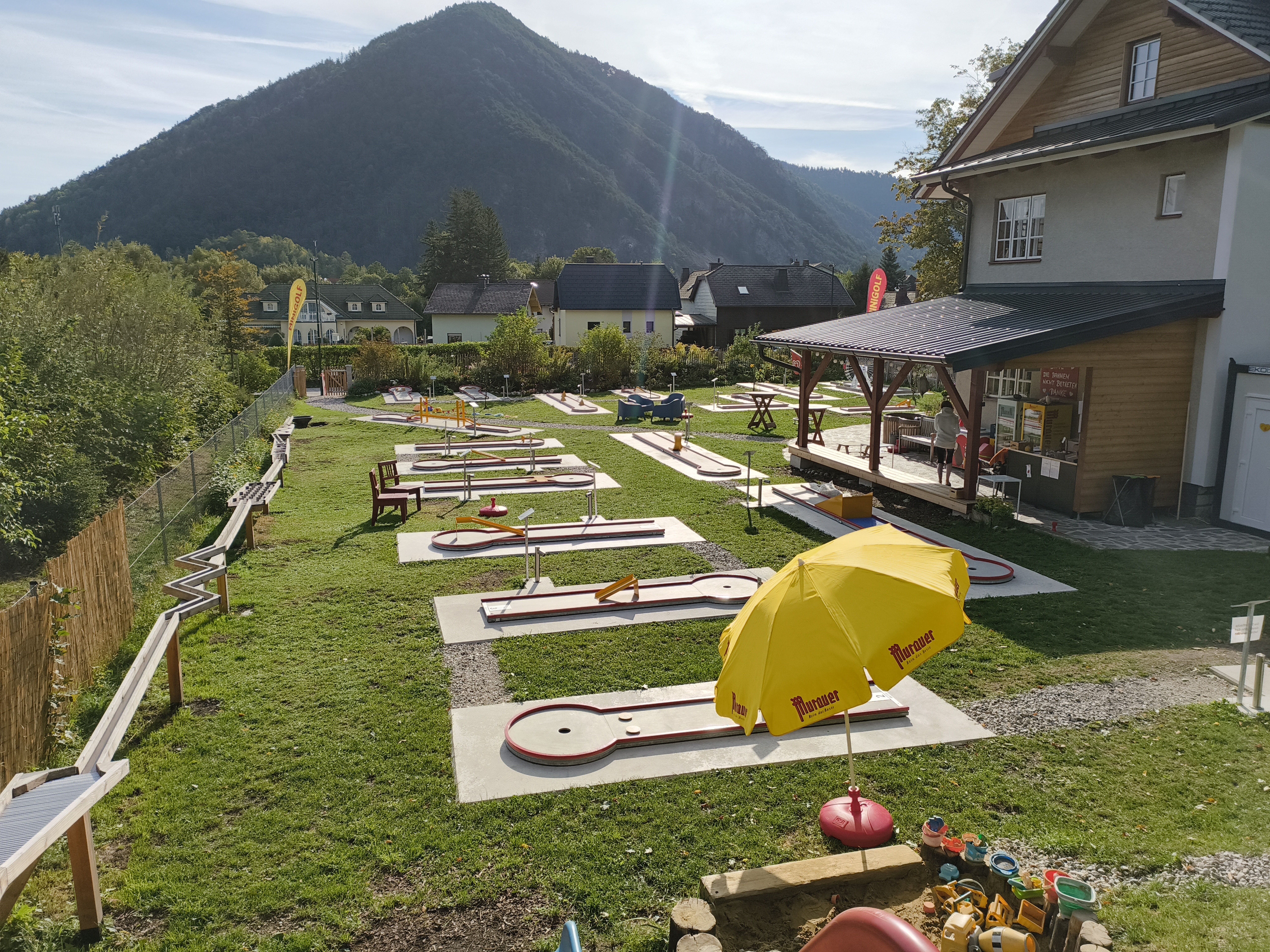 Der Minigolfplatz befindet sich nur 5 Gehminuten vom Bahnhof Puchberg entfernt und bietet Spaß für alle Altersgruppen.