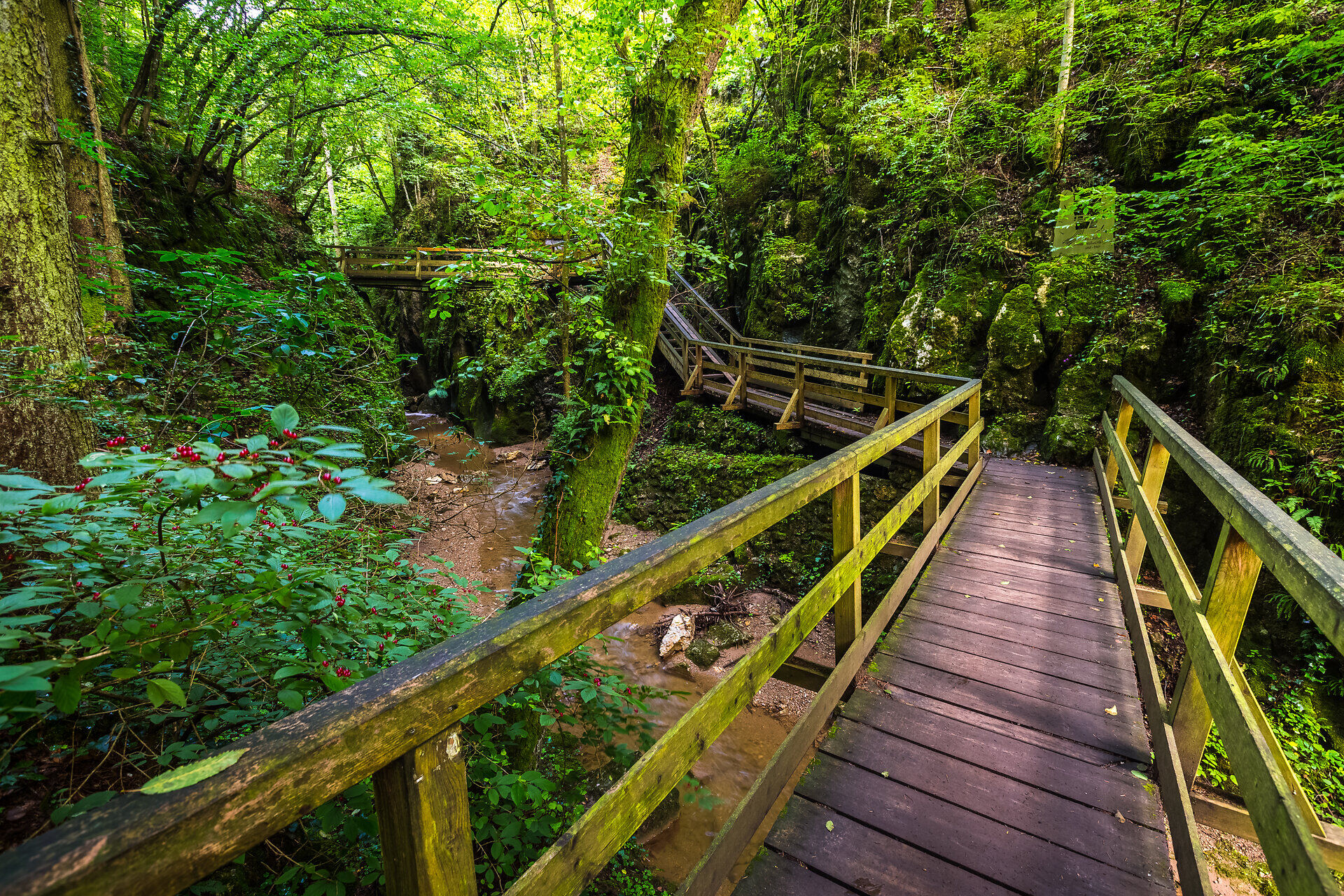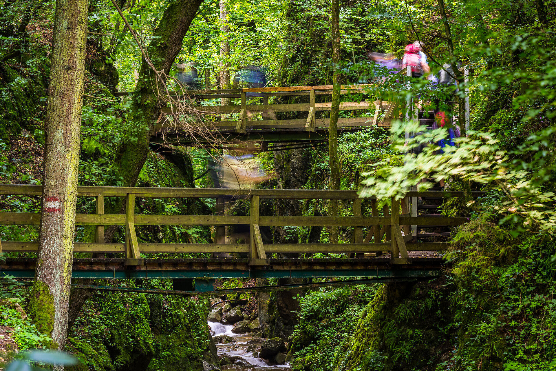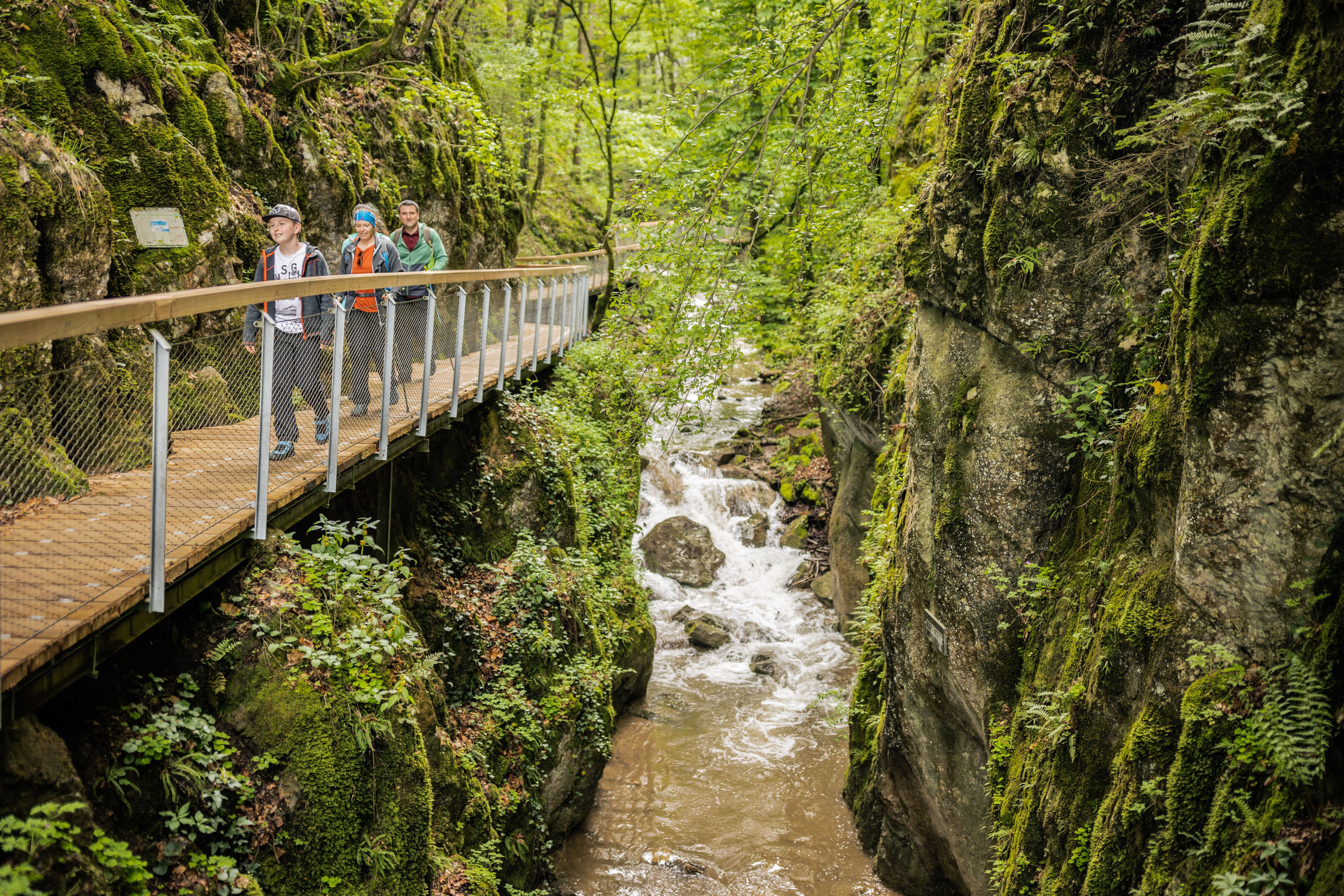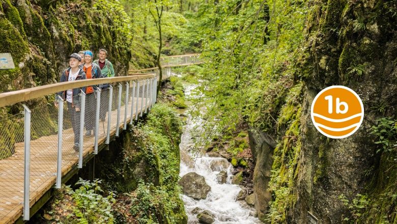 Zwischen steilen Felswänden und moosbewachsenen Hängen führt der Weg durch die Johannesbachklamm – ein naturnahe Oase, die besonders an warmen Tagen angenehm kühl bleibt.