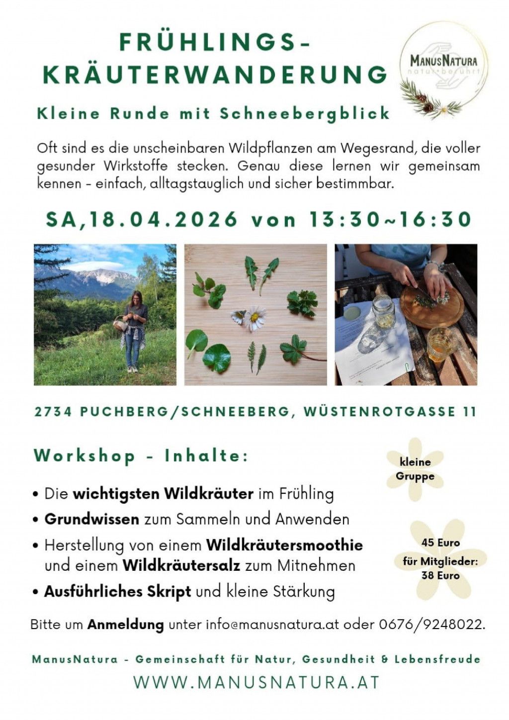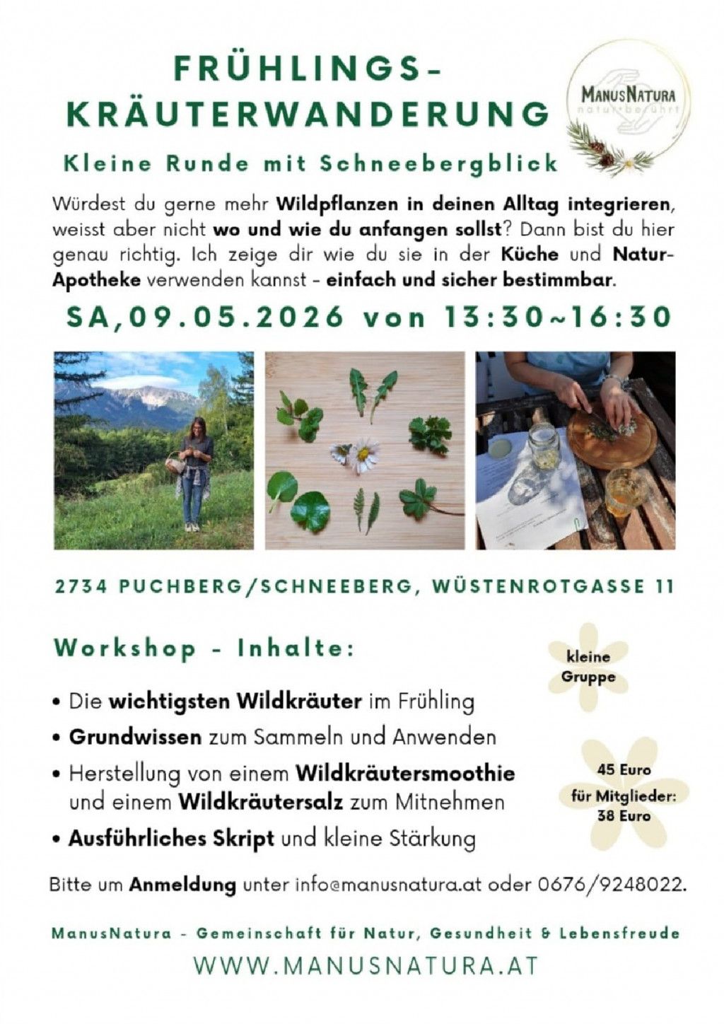 Bitte um Anmeldung unter info@manusnatura.at oder 0676/9248022
