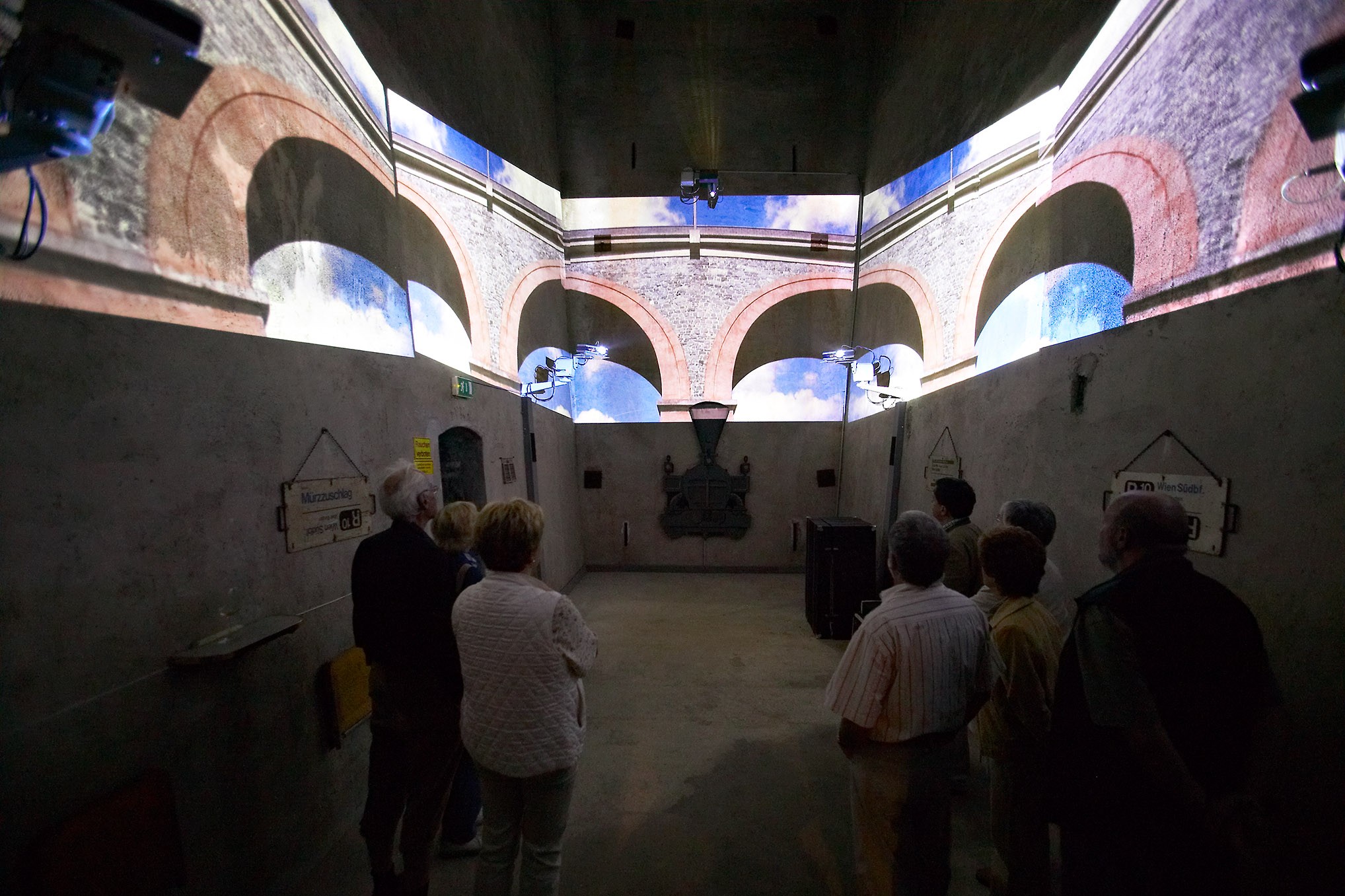 Mithilfe von sechs schwenk- und drehbaren Projektoren bietet eine beeindruckende Ganzraumprojektion einen Einblick in die Entstehung und Bedeutung der Semmeringbahn – die erste normalspurige Gebirgsbahn Europas, die von 1848 bis 1854 gebaut wurde.