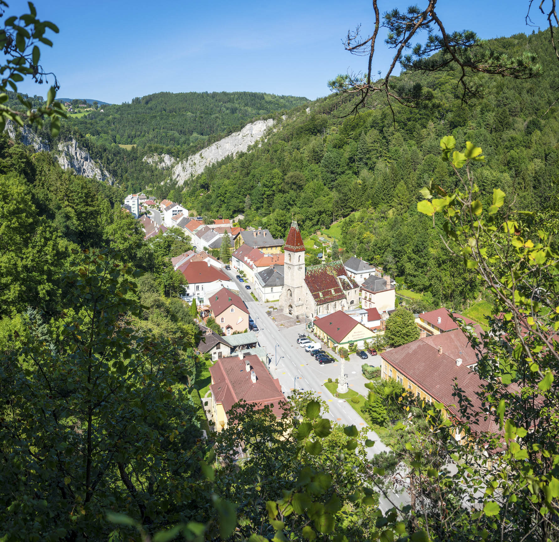 Eingebettet in eine Klamm zwischen Grasberg, Otter, Sonnwendstein und Eselstein liegt die Marktgemeinde Schottwien. Der Ort ist ideal für alle, die gerne aktiv in der Natur unterwegs sind. Außerdem zieht es viele Wallfahrer zur Basililka in Maria Schutz - einem Ortsteil von Schottwien.