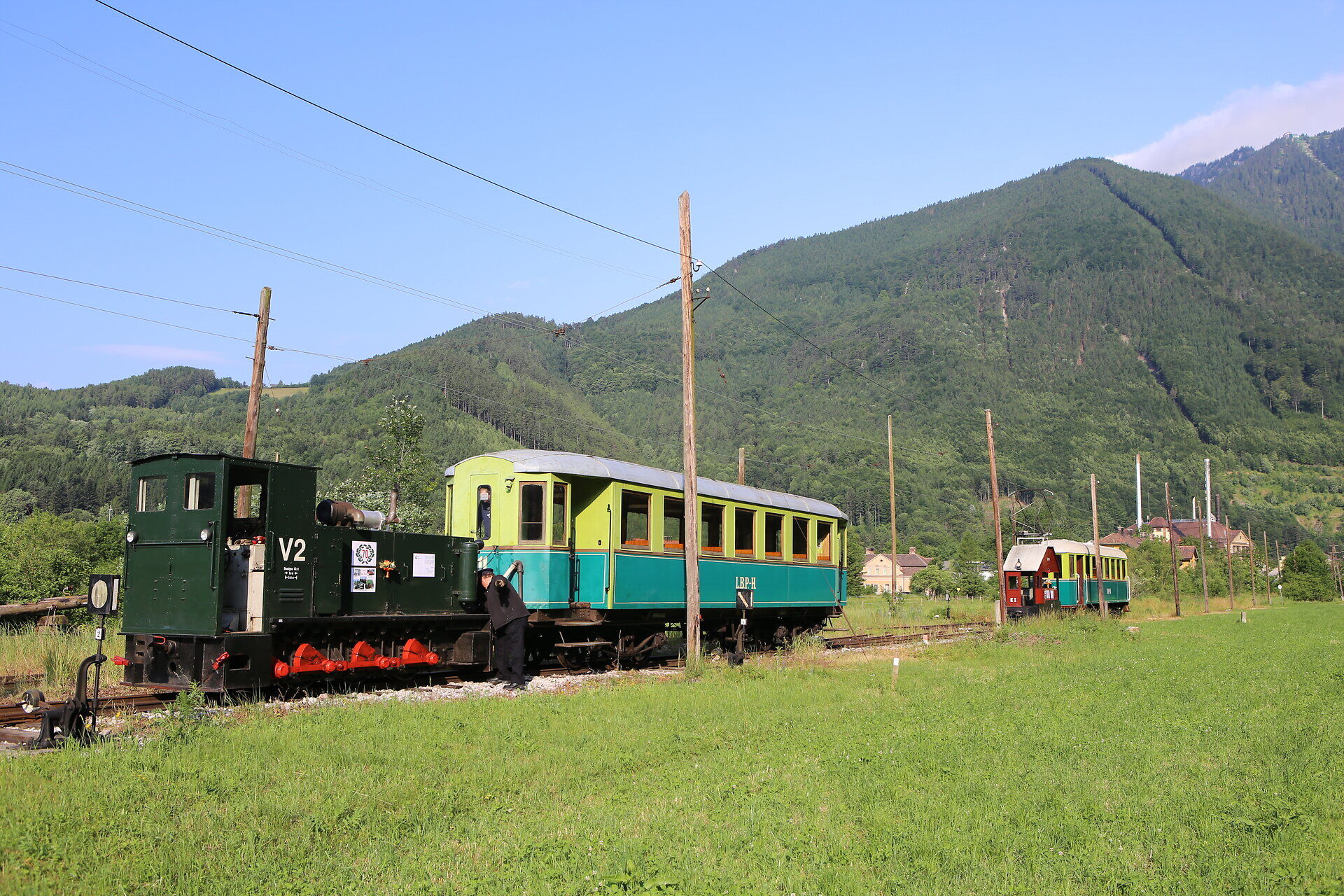1916 beantragte die Holzschleiferei Schoeller & Co. eine Materialbahn zur Anbindung an die Südbahn, die 1918 eröffnet wurde. Bemerkenswert: Drei Elektroloks aus 1903, die ältesten betriebsfähigen Schmalspur-E-Loks Europas, waren im Einsatz – eine davon fährt noch heute regelmäßig.
