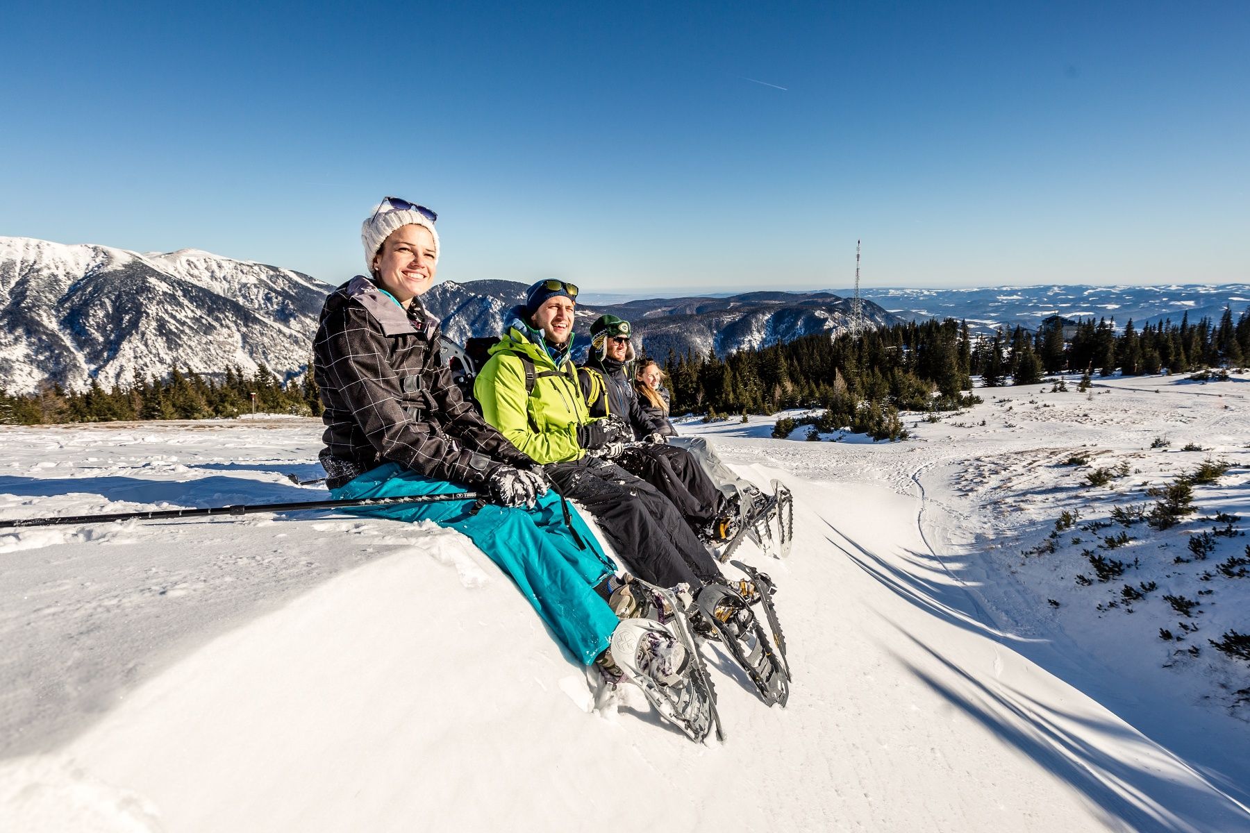 Schneeschuhe und Tourenstöcke können beim Raxalm Berggasthof bei der Bergstation ausgeleihen werden. Bitte vorab reservieren.