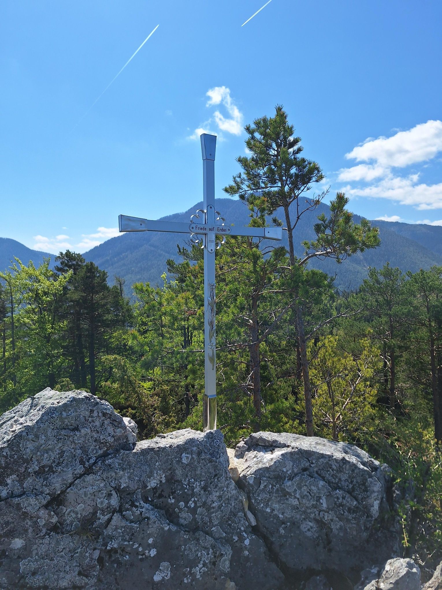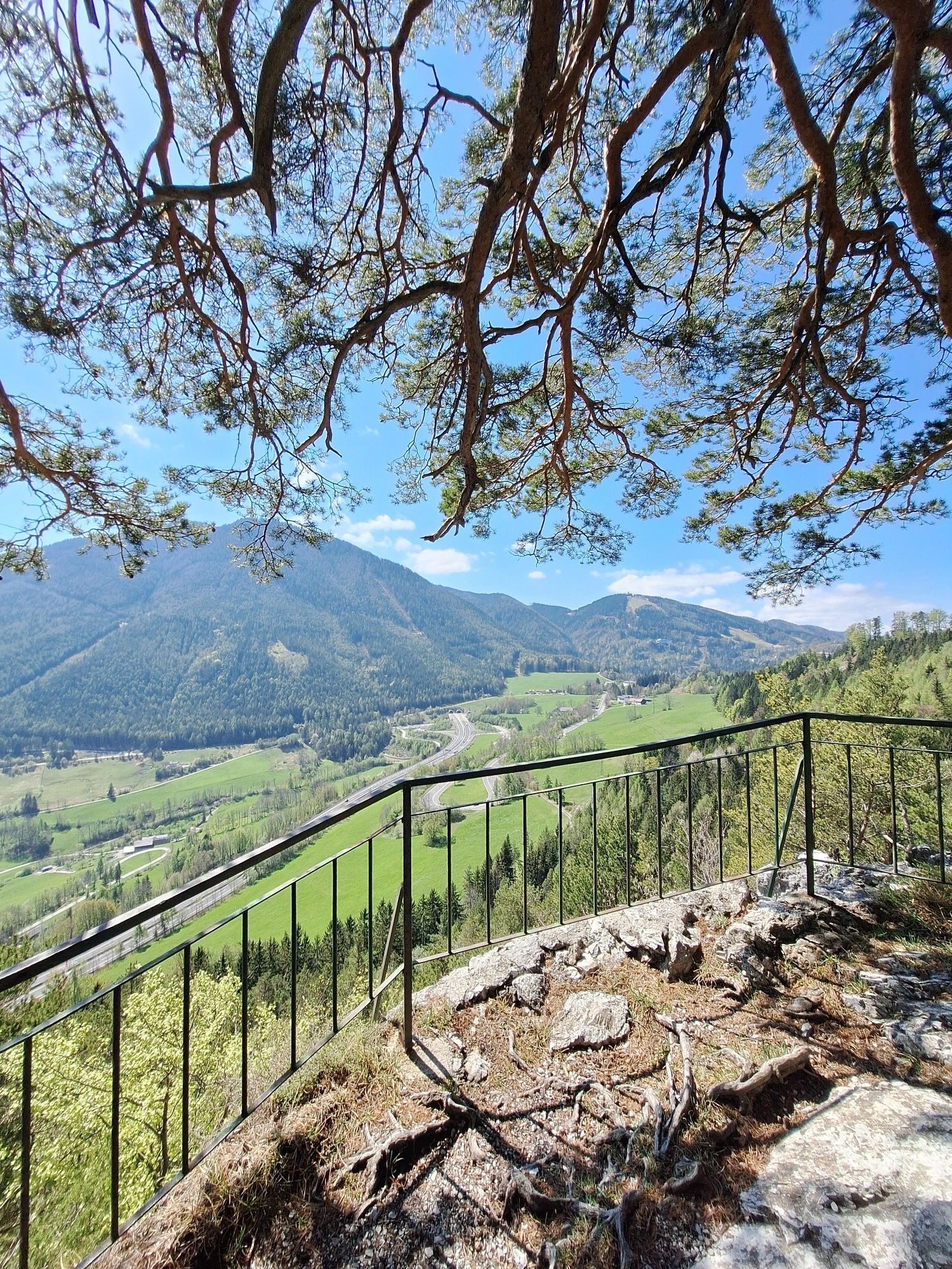 Der Eselstein bietet einen imposanten Ausblick auf die Region. Von hier plante und beobachtete Carl Ritter von Ghega den Bau der Semmeringbahn. Man kann die Viadukte der Semmeringbahn bestaunen und der Ausblick geht über Semmering, Rax und Schneeberg.