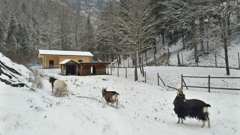 Eine erlebnisreiche Winterwanderung mit Spielplatz, Fischlehrpfad und Streichelzoo im Naturpark Falkenstein in Schwarzau im Gebirge.