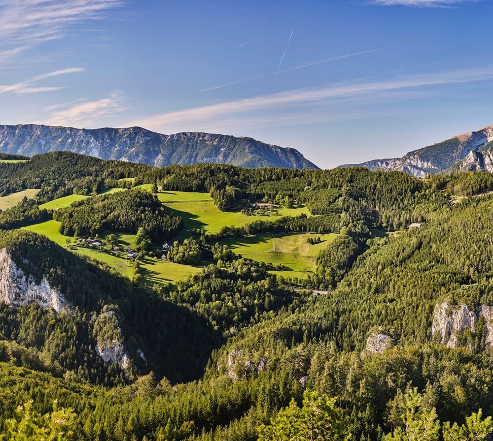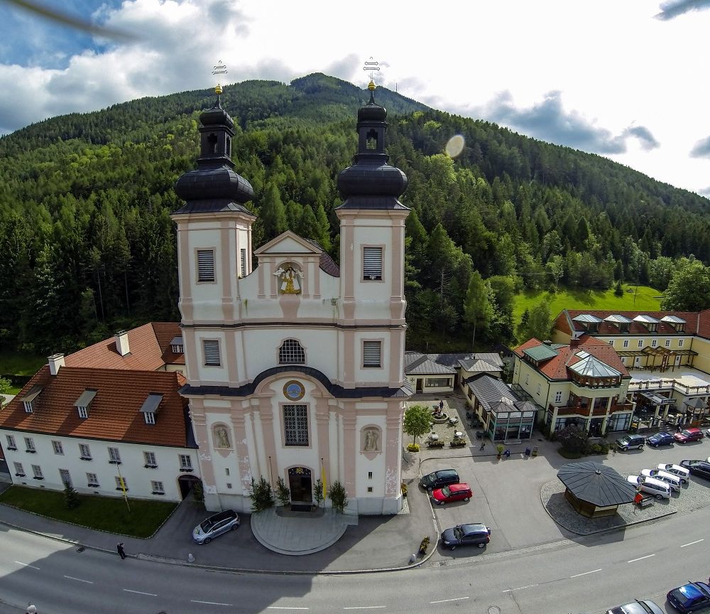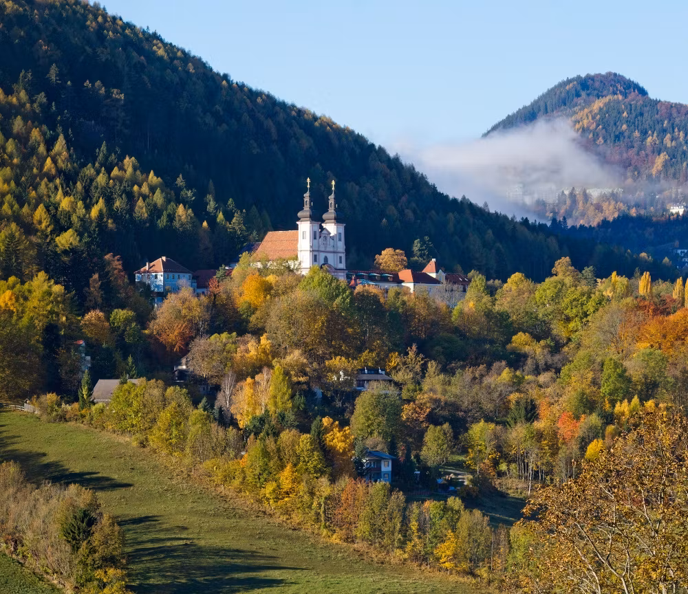 Nahe des Semmerings liegt mit Maria Schutz ein Ort, der seit Jahrhunderten Wallfahrer und Pilger anzieht. Die barocke Wallfahrtskirche am Fuße des Sonnwendsteins mit ihren zwei Türmen ist von weitem sichtbar.