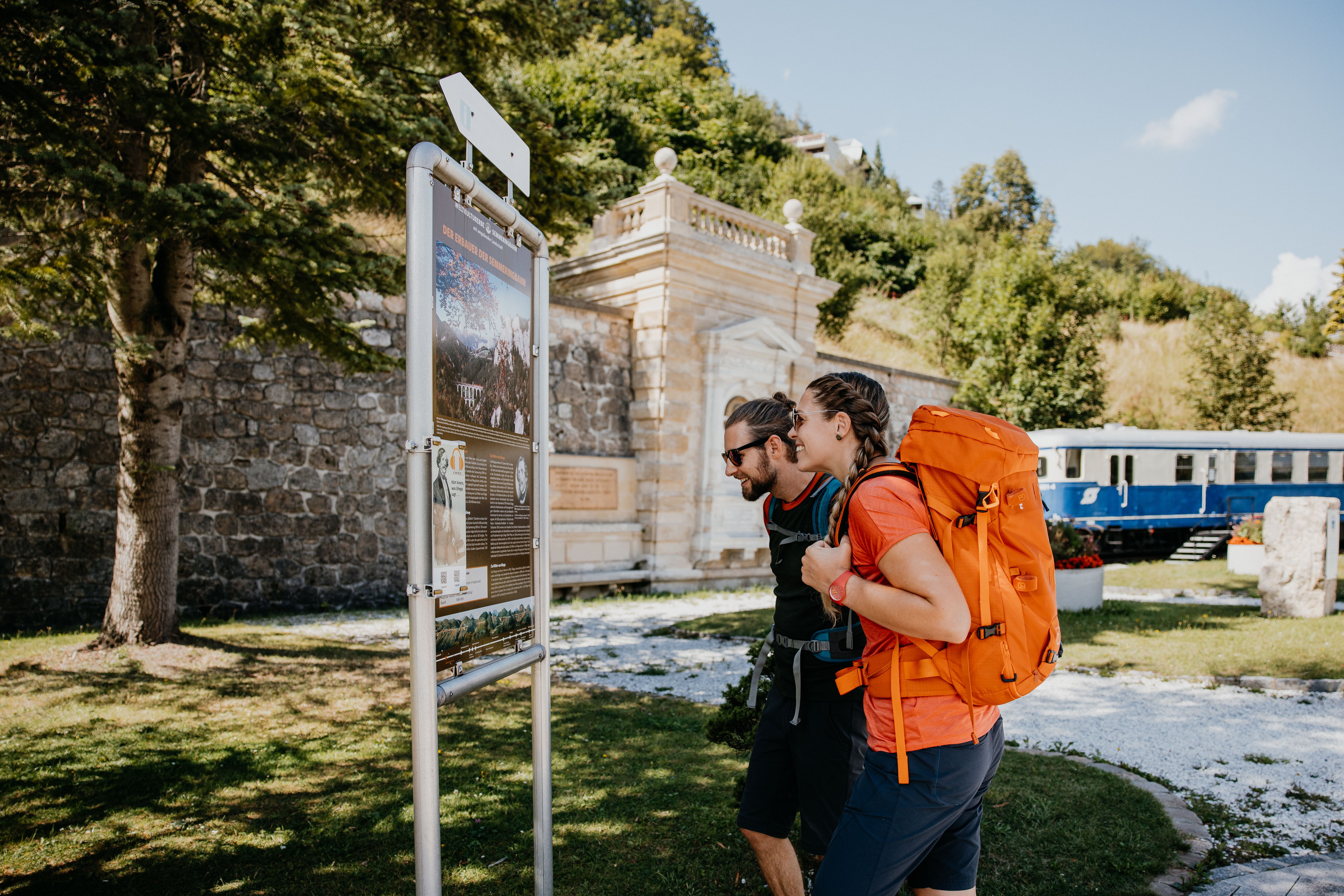 Der bekannteste Weg ist der Bahnwanderweg, der am Bahnhof Semmering startet und nach Payerbach oder Gloggnitz führt. Dank der Bahnhöfe entlang der Strecke lässt sich die Route beliebig verkürzen.