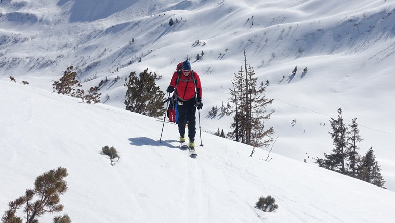 LVS-Gerät, Schaufel und Sonde gehören zur Grundausstattung, ein Lawinenairbag bringt zusätzliche Sicherheit. Wer zum ersten Mal eine Skitour geht, kann bei der Schi- und Bergsteigerschule Peter Groß in Puchberg einen Einstiegskurs buchen. Hier lernt man den Umgang mit der Ausrüstung und profitiert in der Gruppe von der Erfahrung lokaler Guides: Denn im alpinen Gelände ist man nie alleine unterwegs.