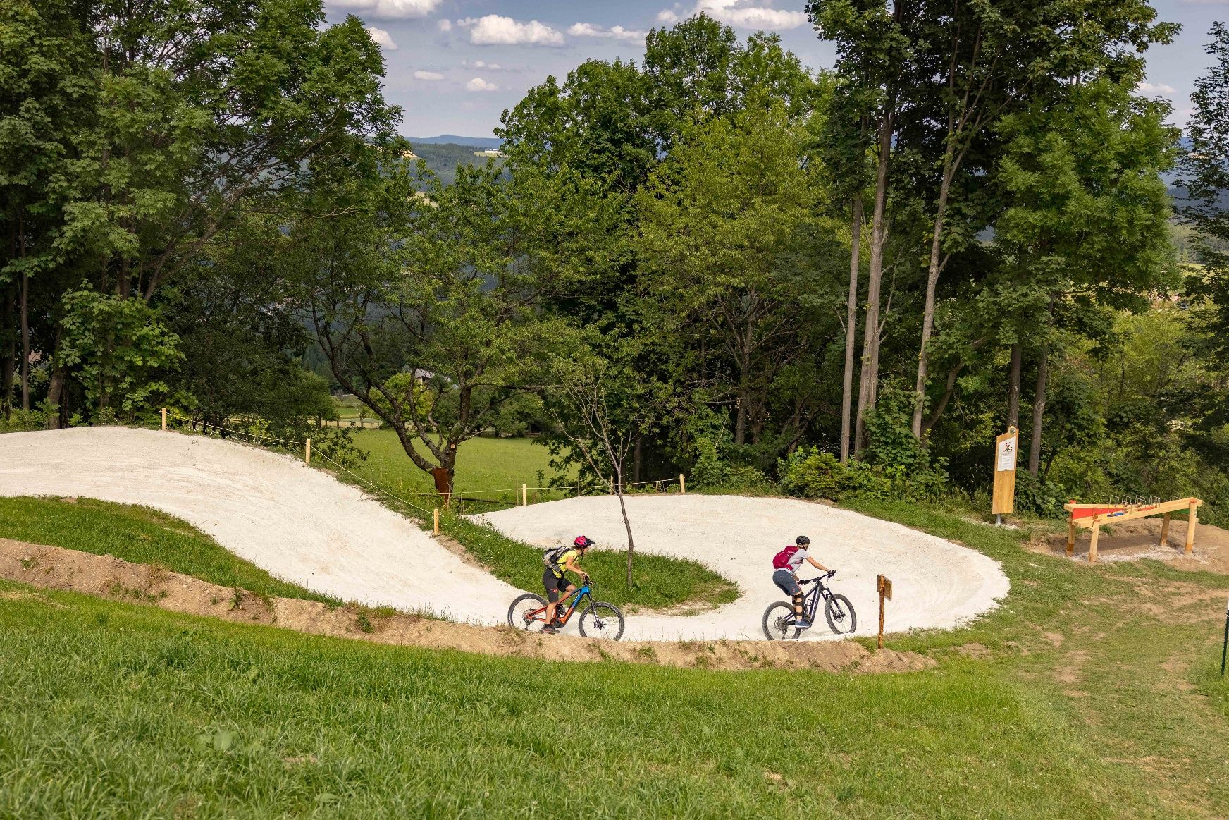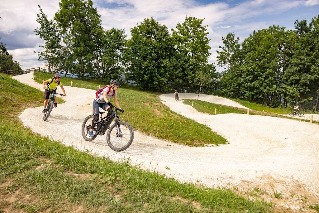 Noch leichter als der Flowtrail und spannender als jede Forststraße. Einfachste Bedingungen sind der Grund für eine sichere Bergabfahrt, sogar ohne vorherige Bikepark-Erfahrung. Superflach, keine hohen Kurven und keine Wurzeln oder Steine legen sich in den Weg. Der Bergabradweg ist für Einsteiger aller Alterskategorien geeignet und empfiehlt sich für jeden, der zum ersten Mal in einem Bikepark ist.