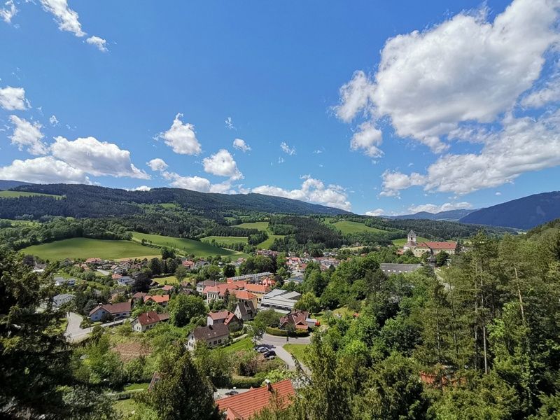 Weiter geht es über die Treppe in ein Waldstück. Hier können Sie die heimische Fauna und Flora entdecken und mit etwas Glück das Zwitschern der Vögel und das Rascheln kleiner Tiere hören. Die Ruhe des Waldes öffnet sich nach einer Weile beim Pfadfinderheim. Auf dem weiteren Verlauf des Spazierwegs gehen Sie entlang der Klostermauern. Nehmen Sie sich die Zeit auf einem der Bankerl eine kurze Rast einzulegen bevor Sie den Vorplatz der Pfarrkirche erreichen.