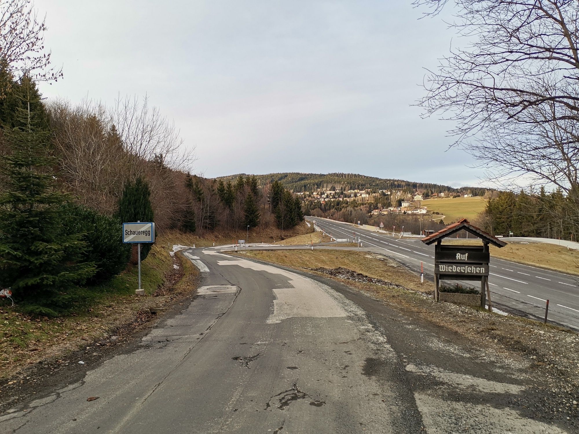 Die Route beginnt beim Hotel Thier Richtung Kirchenwirt, vorbei an der Pfarrkirche Maria Namen und durch den Jenseitspark mit Steinskulpturen des ansässigen Künstlers Christof Seiser. Vorbei am Seiser Troadkostn - sein Atelier und Schauraum und unterhalb bei Haus Seisers schräge Wiese rechts in die Straße abbiegen. Der Markierung folgen, druch den Wald bis zum Grenzbach. Ein idyllisches Rastplätzchen lädt zum verweilen ein, bevor es ein Stück bergauf geht und weiter auf einem wunderschönen Waldweg. Danach bietet sich ein herrlicher Ausblick, und es geht bergab zum ehem. Gasthof Binder Richtung Schaueregg. Ein kurzes Stück entlang der Straße, die Straße überqueren und zurück durch den Pfeffergraben. Oben angekommen, wieder die B54 queren zum Rasthaus Dreiländerblick Müllner-Rehberger, danach rechts halten, ein kurzes Stück auf der Anton Wildgans Promenade und entlang der Straße wieder retour zum Ausgangspunkt.