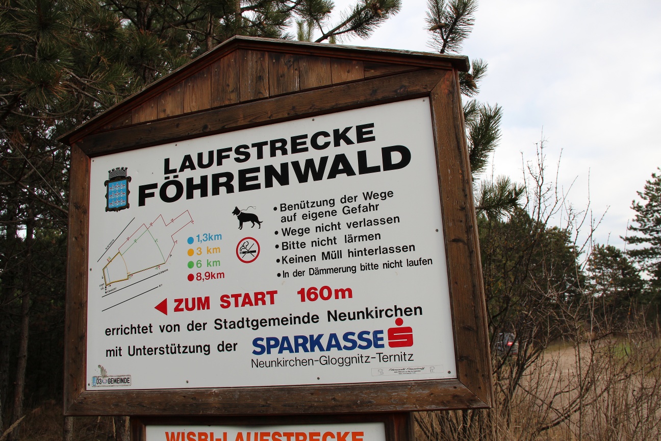 Aus einer Idee passionierter Neunkirchner Läufer wurde nach kurzer Zeit Realität - eine markierte Laufstrecke durch den Föhrenwald. Eine große Hinweistafel zeigt den Läufern die verschiedenen Strecken und deren Länge. Die an Steine montierten verschiedenfarbigen Pfeile zeigen den jeweiligen Streckenverlauf. Wir hoffen, dass die Laufstrecke Föhrenwald allen Läufern noch lange erhalten bleibt und sie weiterhin sehr rege genützt wird.