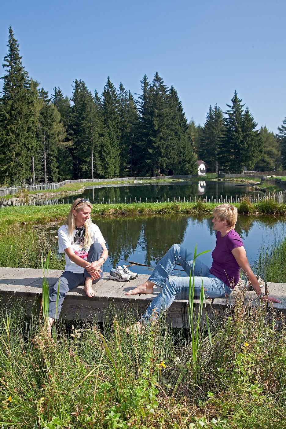 Am Themenweg Lebenswasser kann man sich mit Fragen über den Wasserkreislauf vom Regen über den Ursprung einer Quelle bis zum Bächlein und zum Teich zu beschäftigen.