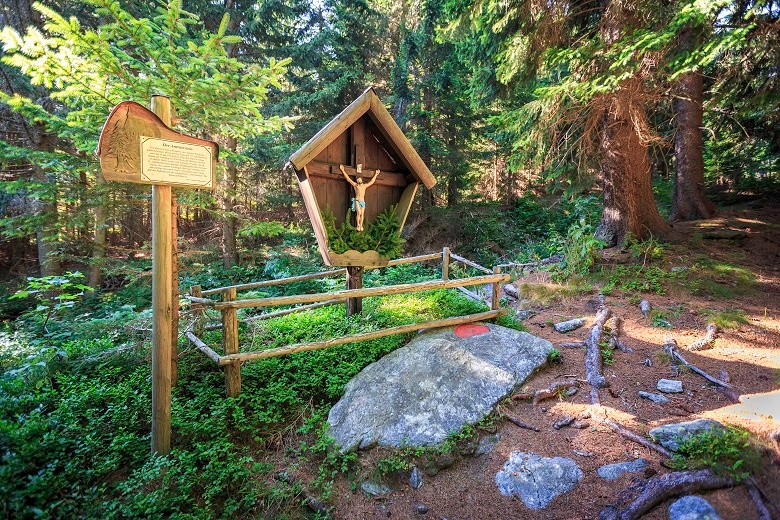 Gemütlicher Wanderweg ab dem Ödenhof auf 950 m Seehöhe mit Panoramablick auf Sonnwendstein, Rax und Schneeberg – weiter entlang der Forststraße bis zum Wasserbehälter (Rastplatz) und durch den schattigen Wald bis zur Almrauschhütte auf 1.240 m Seehöhe – weiter über den Wendelin und Antrittsstein (Sagenpunkt) zur Kampsteiner Schwaig (1.400 m) – am Gipfelkreuz vorbei (1.467 m) zur Herrgottschnitzerhütte (1.318 m) – Speicherteich (1.140 m) – Gasthof Orthof (1.000 m) – Ödenhof