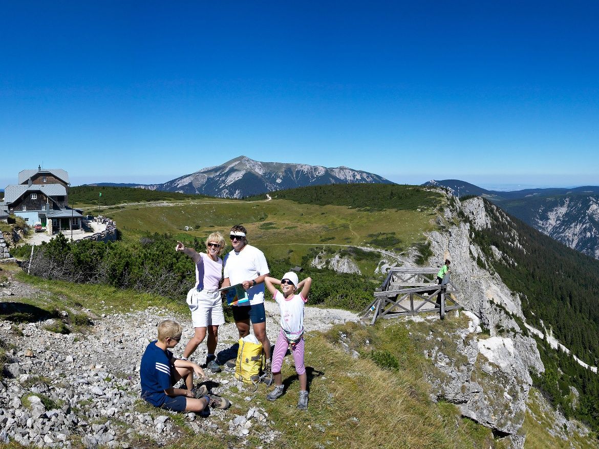 Die 12. Etappe des Weges am Wiener Alpenbogen (WAB) wird begleitet von alpinem Rasen, Latschen und schroffem, gleichzeitig sicherem Gelände. Eine herrliche Plateuwanderung mit moderaten Auf- und Abstiegen. Der Weg ins Tal lässt sich mit der Rax-Seilbahn verkürzen. HINWEIS: Bitte erkundigen Sie sich vor Ihrem Tourenstart hier bezüglich der aktuellen Öffnungszeiten des Habsburghauses!