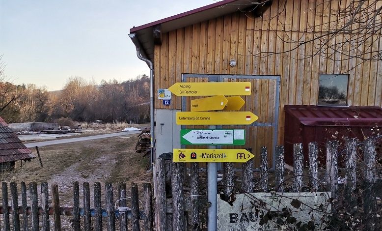 Vom Parkplatz der Wexl Arena geht es bergab Richtung Unternberg. Von der Kapelle direkt an der Straße, wandert man den beschilderten Weg Richtung Passkapelle. Von hier geht es rechts Richtung Hottmansgraben (Aspang). Dieser Weg teilt sich bald, wieder rechts halten Richung ehemaliges Gasthaus Reithofer, wo jetzt Familie Ungersböck die Bergkäserei betreibt. Von Freitag bis Sonntag gibt es Ab-Hof-Verkauf und eine Einkehrmöglichkeit. Von hier geht man zirka 100 Meter den gleichen Weg zurück, biegt aber dann nicht wieder rechts ab, sondern folgt der Straße bis zum Wald, wo ein Schild den Weg Richtung Unternberg, am Schloss vorbei weist. Der Weg führt wieder zurück bis zum Ausgangspunkt.