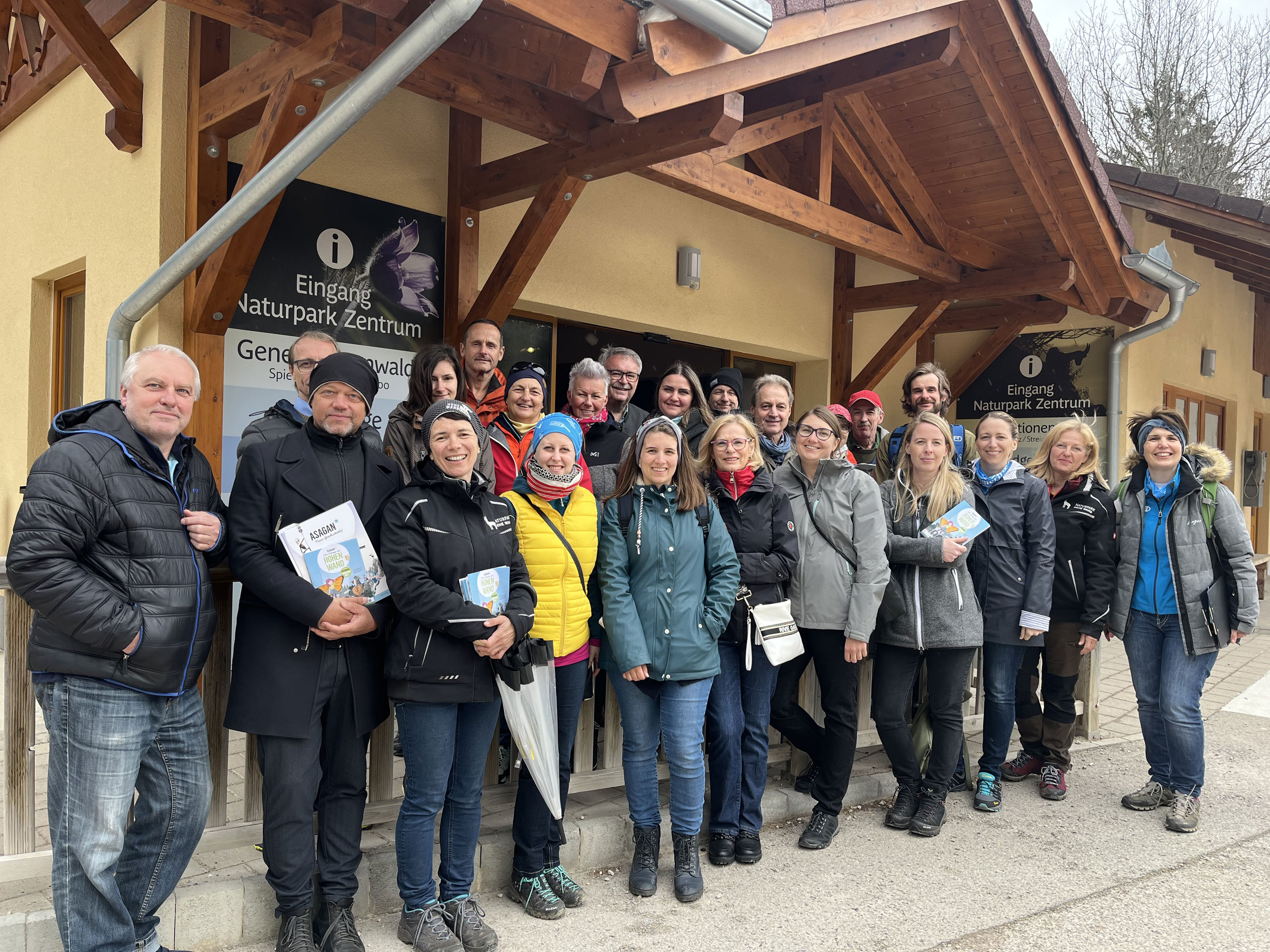 Um sich mit dem neuen Familien-Angebot auf der Hohen Wand vertraut zu machen, besuchten rund 20 Gastgeber:innen das Naturpark Zentrum - mit dabei war auch Kinderbuchautor Wolfgang Hartl, der Schöpfer der beliebten Welt von ASAGAN, in deren Stil auch die neuen Erlebnisstationen und das neue Steinbock-Kino gestalten sind.