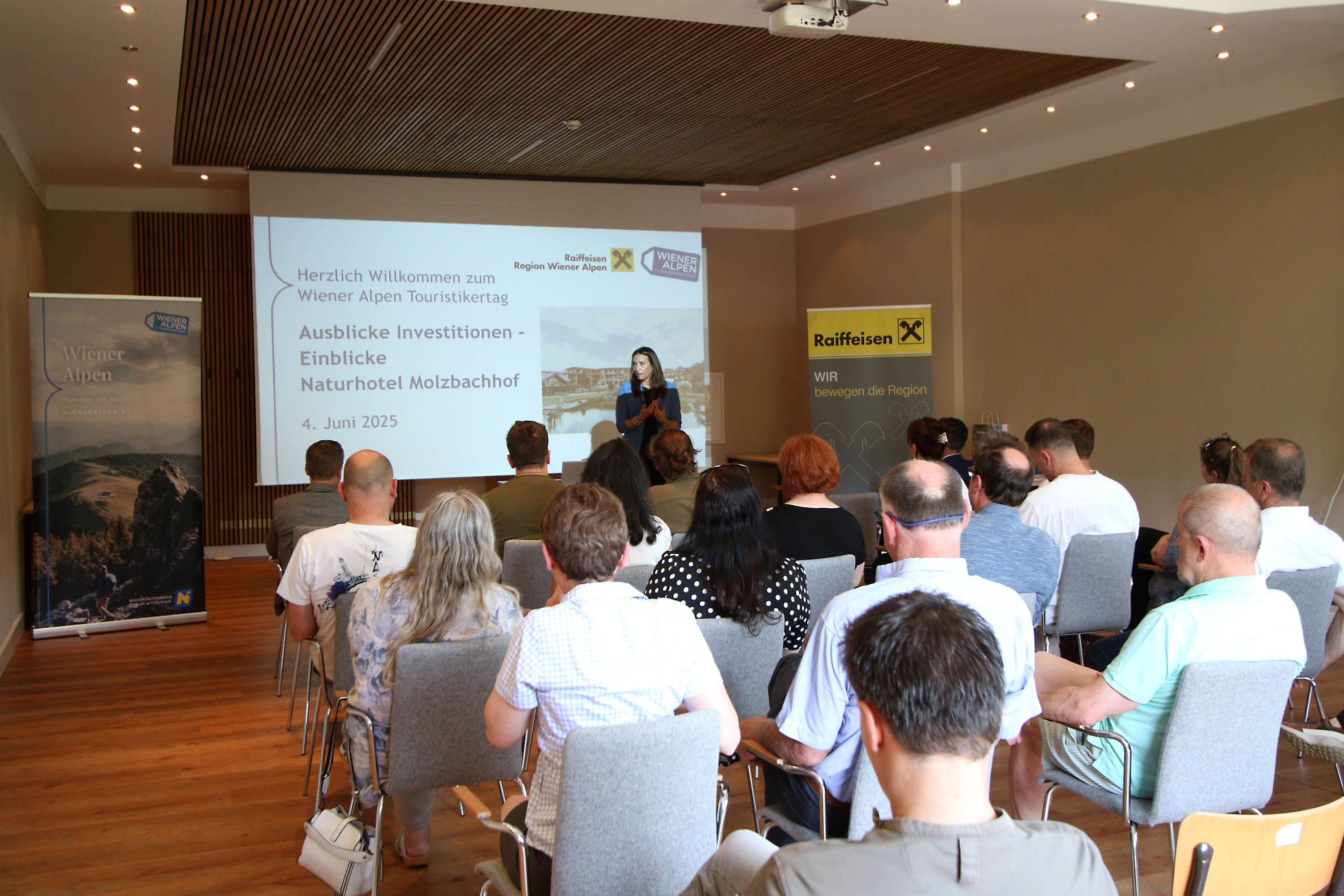 Beim Touristikertag der Wiener Alpen in Niederösterreich Tourismus GmbH begrüßte Geschäftsführerin Mariella Klement-Kapeller 25 Touristiker:innen aus der Region. Wie schon beim Tourismusempfang im November 2024, stand auch dieses Mal das Thema Nachhaltigkeit im Mittelpunkt. Passend dazu traf sich die Runde im Naturhotel Molzbachhof in Kirchberg am Wechsel, einem Vorreiter in Sachen ökologischer und sozial verantwortungsvoller Unternehmensführung.