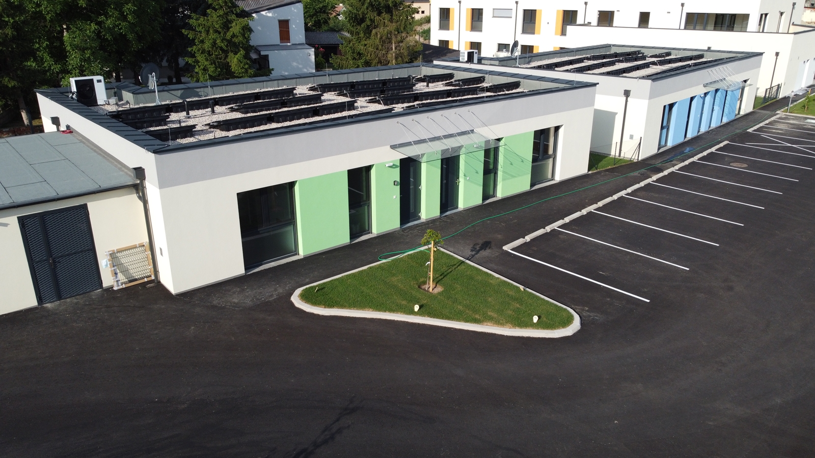 Sie befinden sich in unmittelbarer Nähe zur Therme Asia Linsberg in Bad Erlach, nur fünf Gehminuten entfernt. Die Appartements sind 80 bis 160 Quadratmeter groß und bieten Platz für vier bis neun Personen. Sie verfügen über kostenfreies WLAN, eine voll ausgestattete Küche und Fußbodenheizung. Im Sommer sorgt eine Gebäudekörperkühlung für angenehme Temperaturen. Eine E-Tankstelle für Elektroautos und kostenfreie Parkplätze sind ebenfalls vorhanden. Die ruhige Lage nahe Wiener Neustadt und die gute Anbindung an das öffentliche Verkehrsnetz und die Südautobahn (A2) machen die Bungalows zu einem idealen Ausgangspunkt für Tagesausflüge. In der Umgebung gibt es zahlreiche Freizeitmöglichkeiten, darunter zwei 18-Loch-Golfplätze, das Schwimmbad Pitten und das Parkbad Seebenstein. Bauernläden in der Nähe bieten regionale Köstlichkeiten an. Supermarkt, Bäckerei, Gasthäuser, Fahrradgeschäft und Apotheke sind zu Fuß erreichbar.